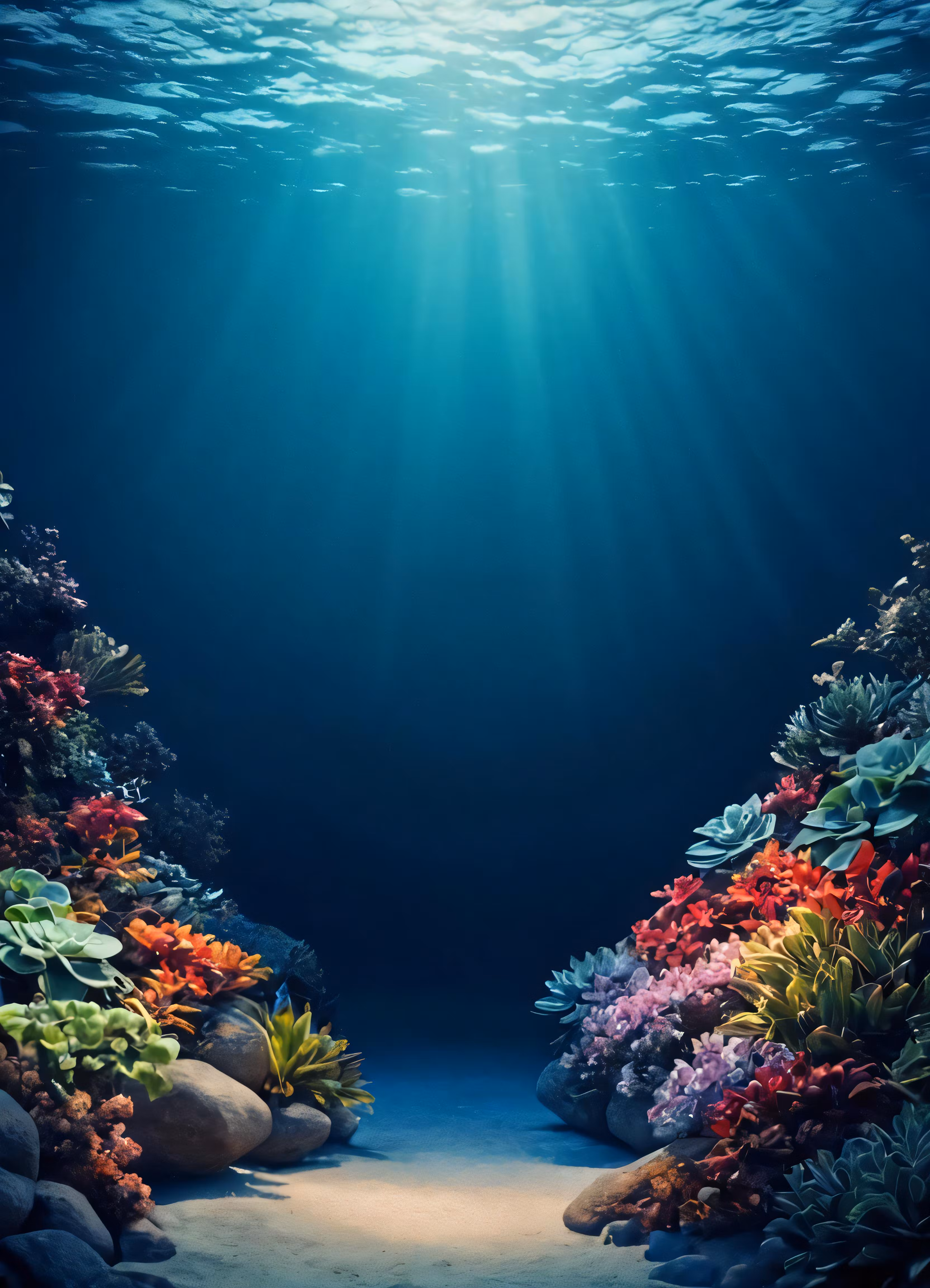 High resolution picture, free to use, the official logo for the 50 /an underwater coral reef with sunlight rays beaming through the water