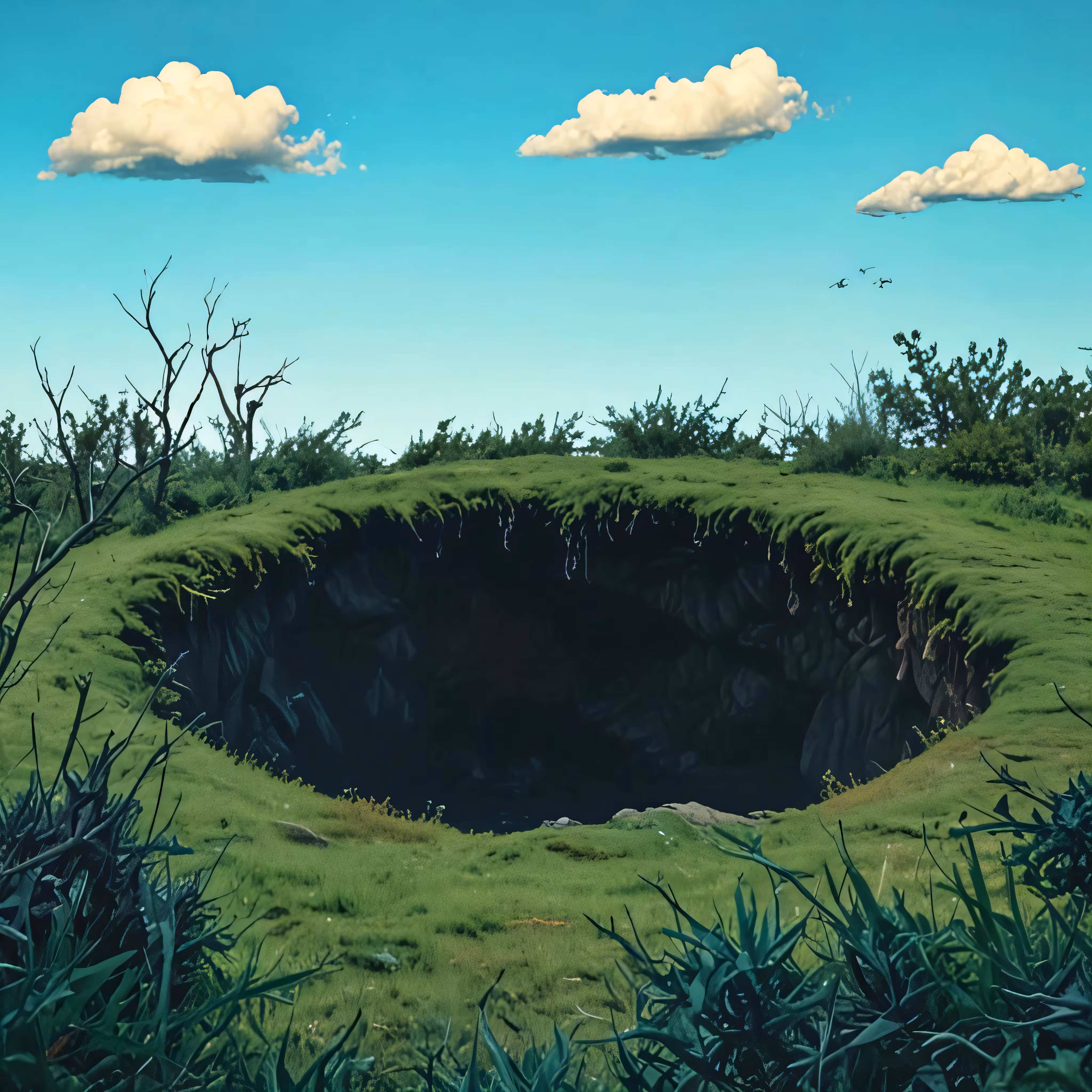 High resolution picture, free to use, the official logo for the 50 /an unusual, well made hole surrounded by many bushes and trees
