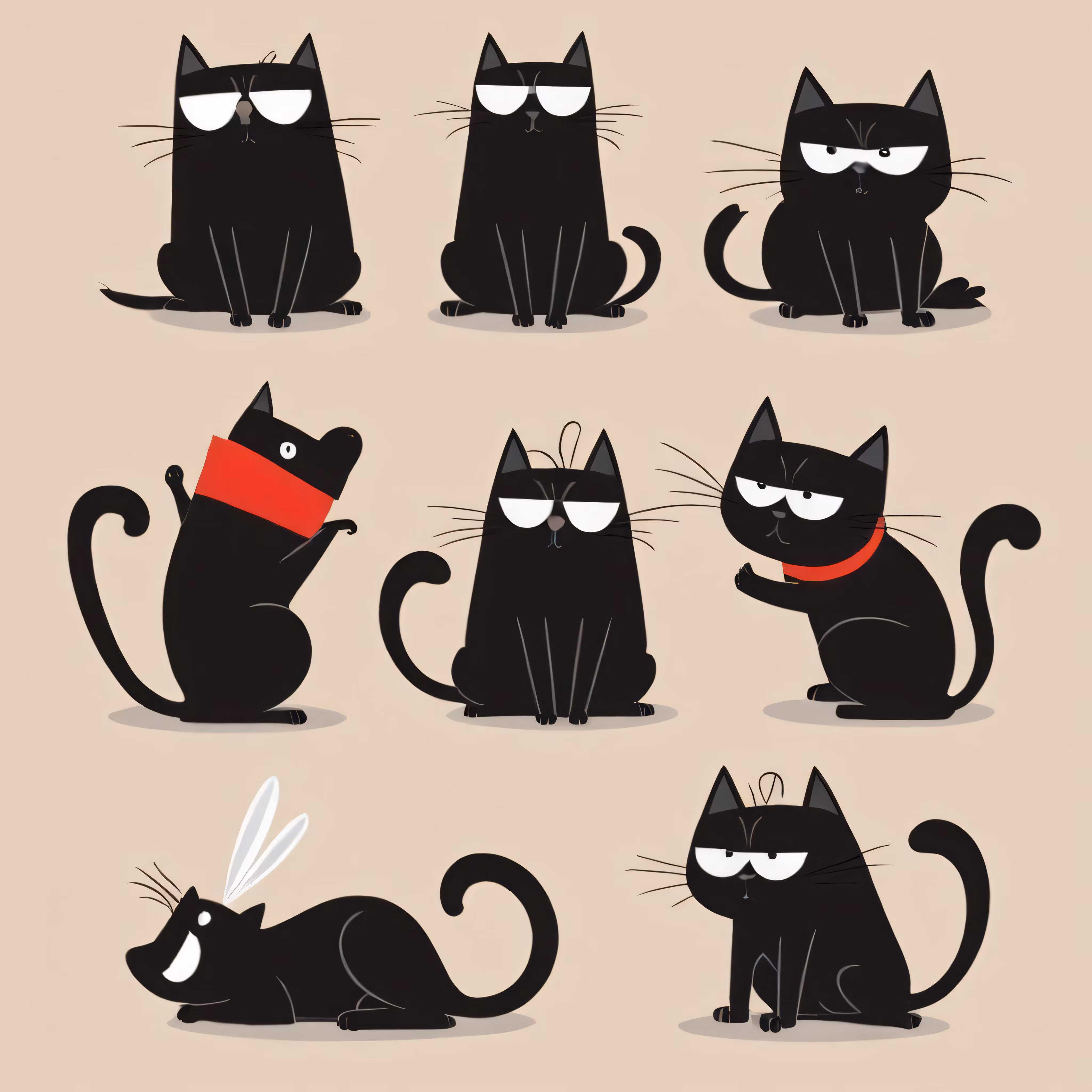 High resolution picture, free to use, the official logo for the 50 /black cats with different expressions sitting down
