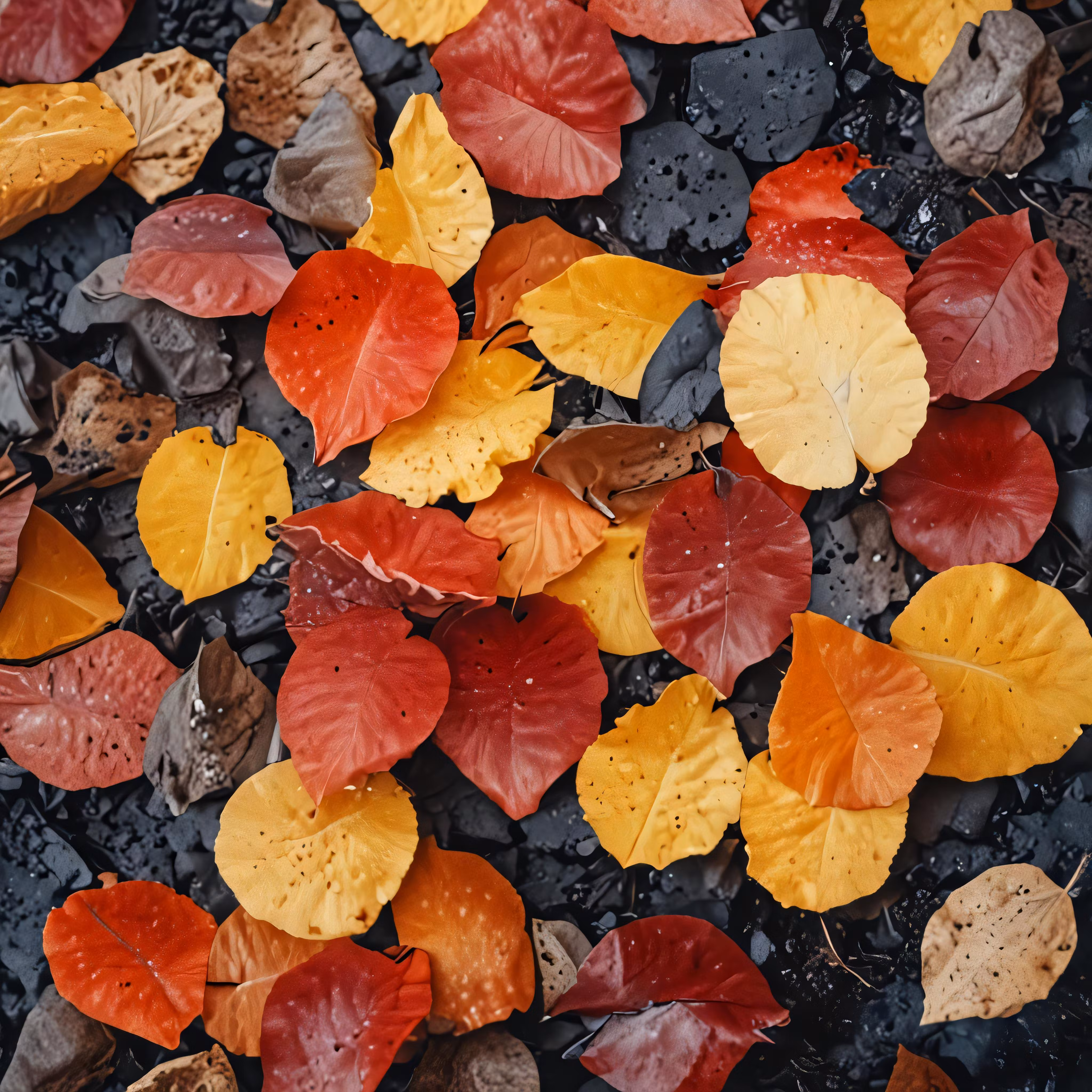 High resolution picture, free to use, the official logo for the 50 /several different colored leaves on a wet surface