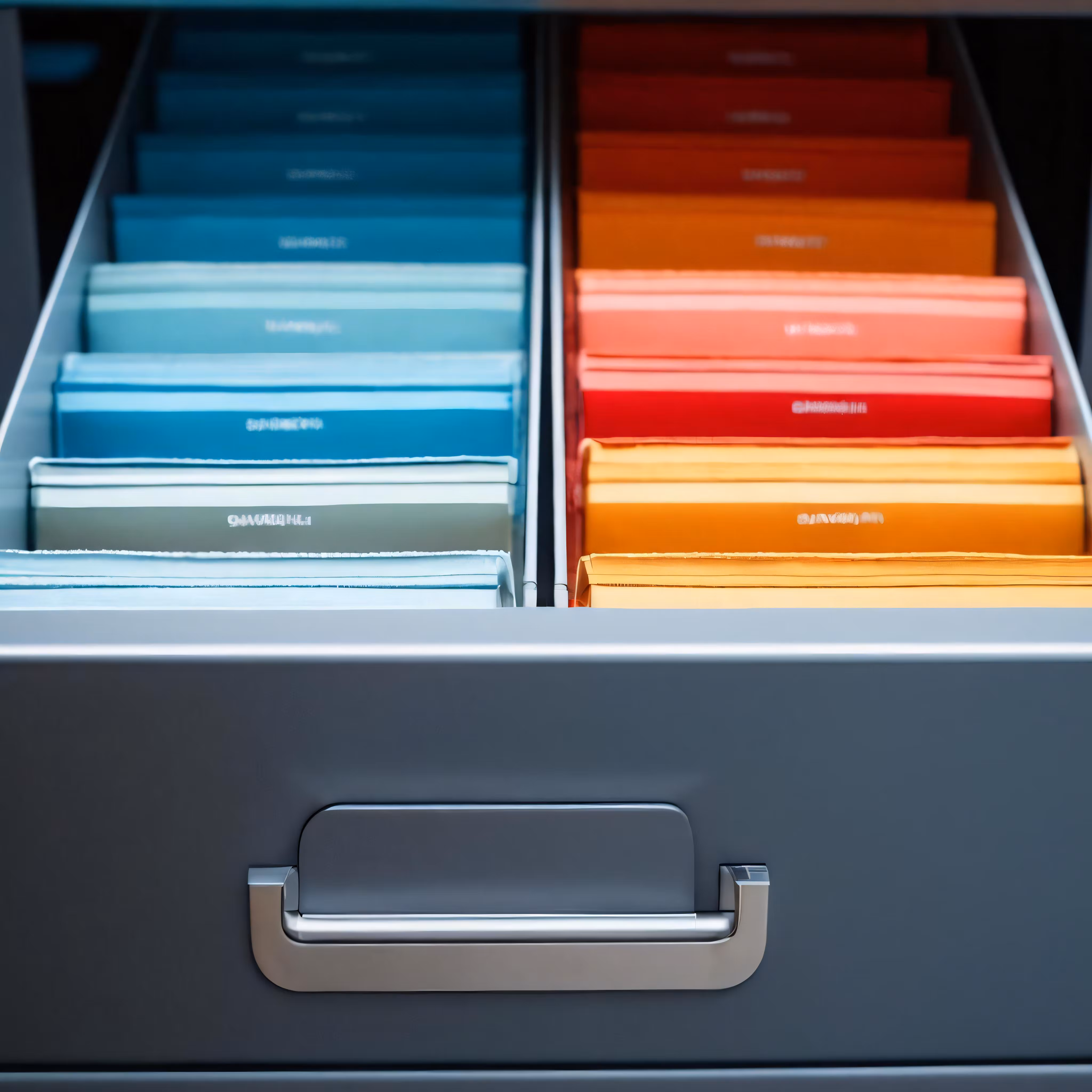 High resolution picture, free to use, the official logo for the 50 /several folders are stored in a file drawer