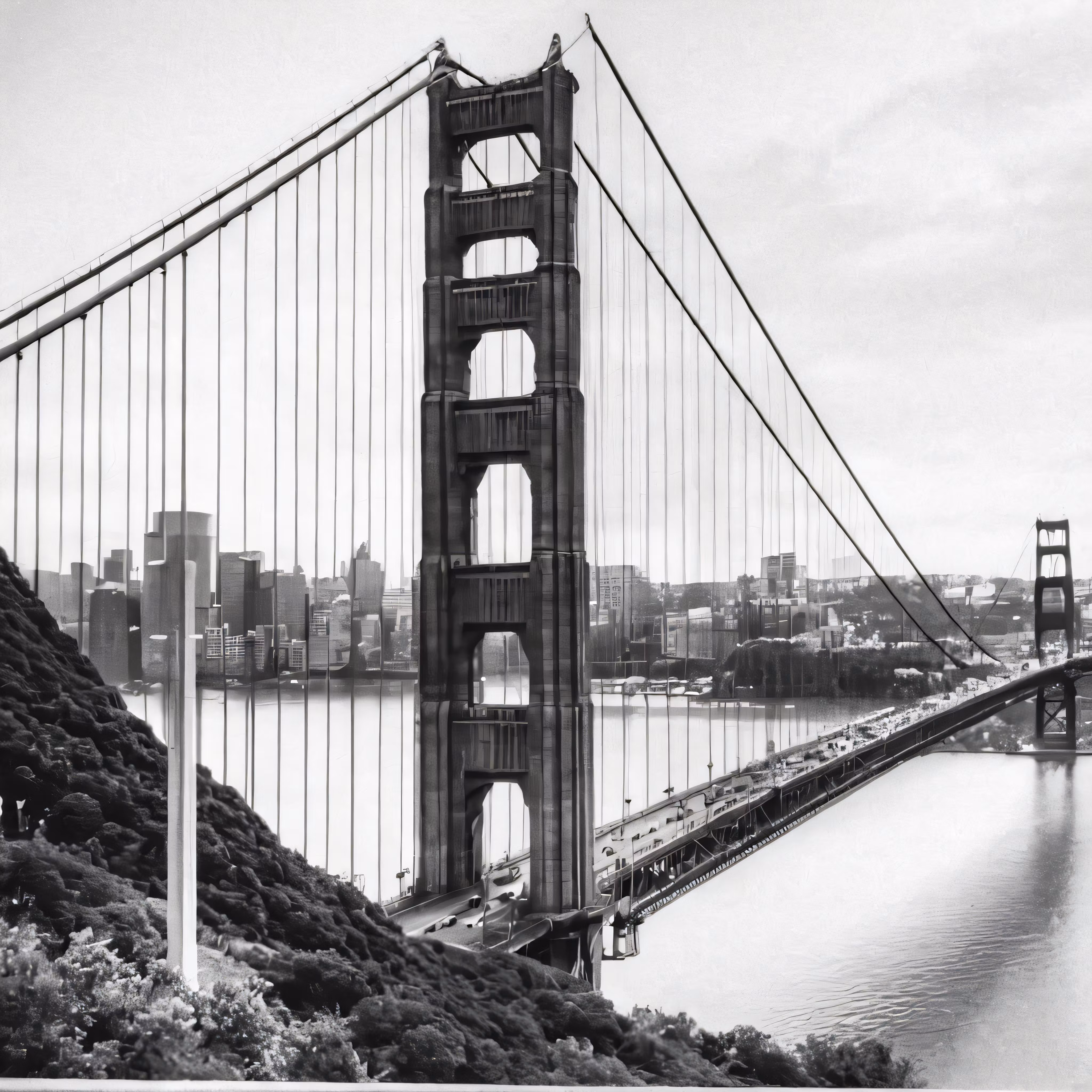 High resolution picture, free to use, the official logo for the 50 /the golden gate bridge is surrounded by a long and steep hill