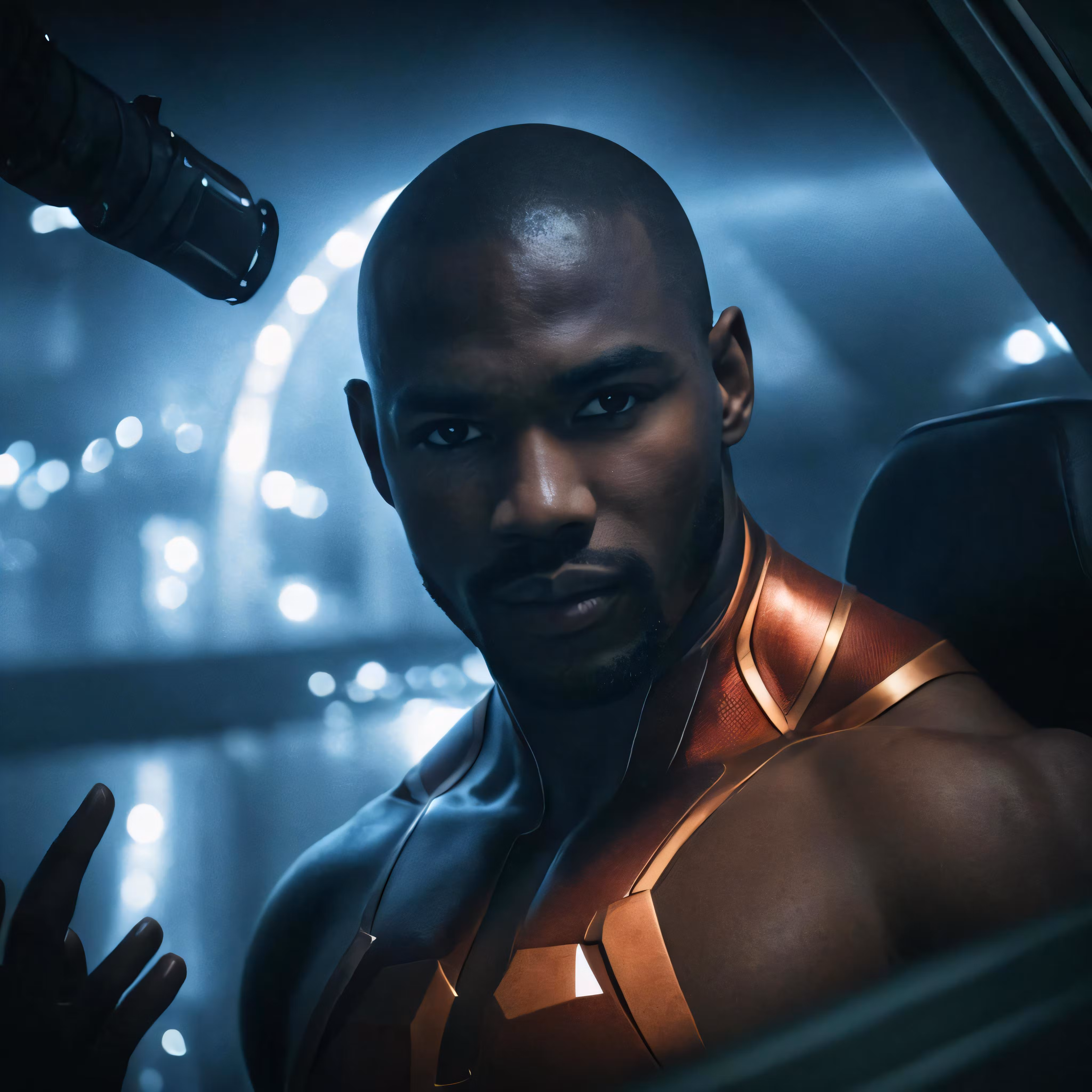 High resolution picture, free to use, the official logo for the 50 /the man in armor is staring into the distance
