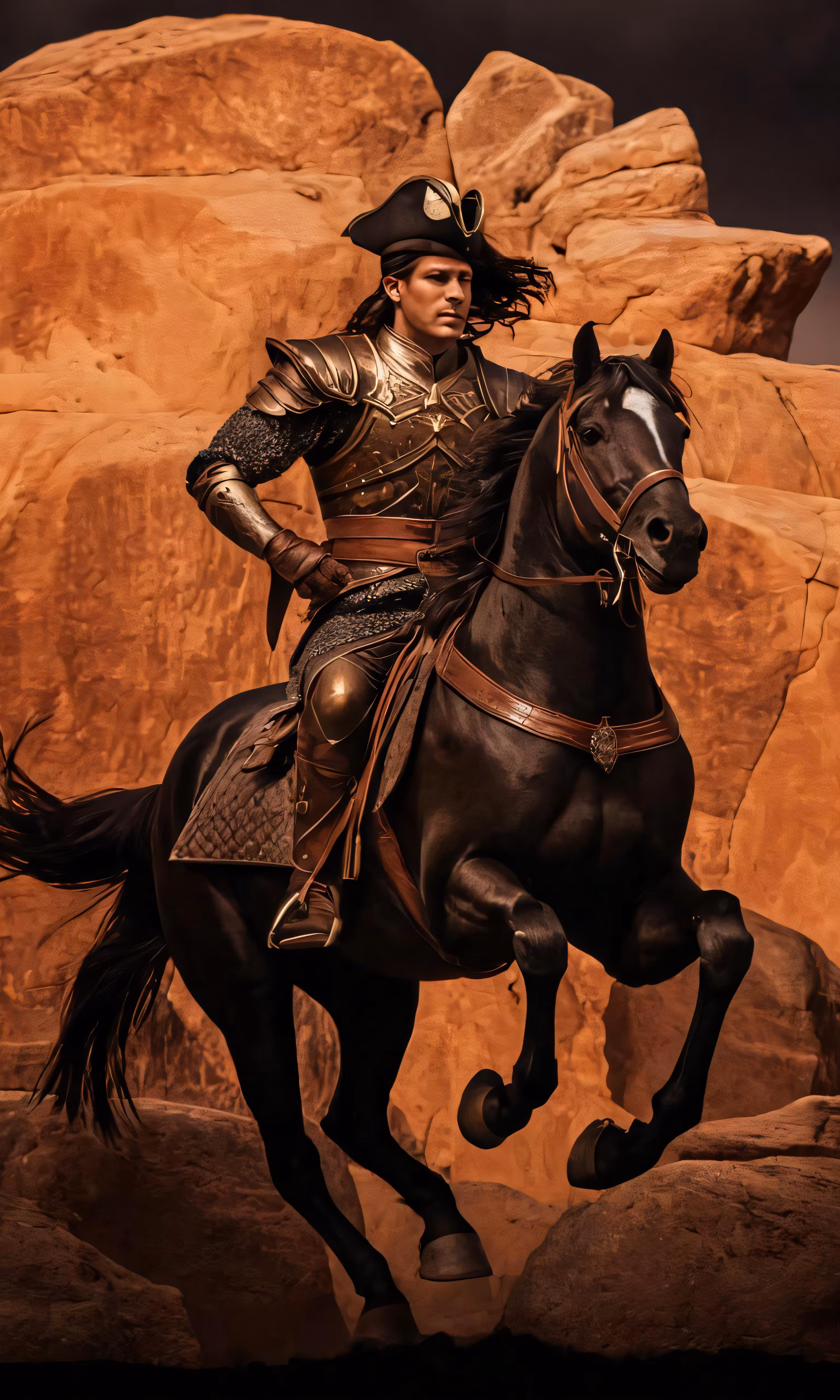 High resolution picture, free to use, the official logo for the 50 /the man in gold is riding a black horse