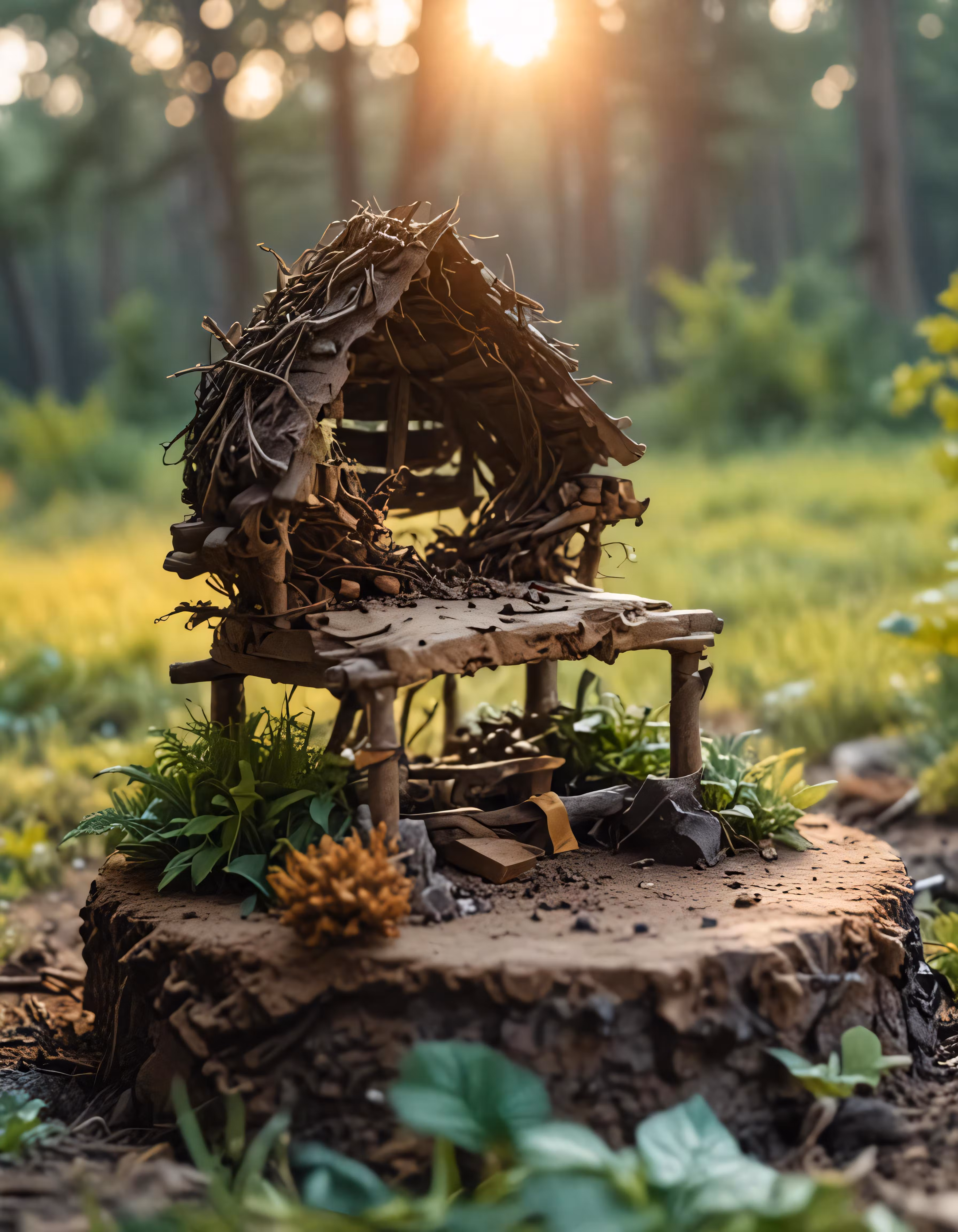 High resolution picture, free to use, the official logo for the 50 /the miniature fairy house is on top of a tree stump