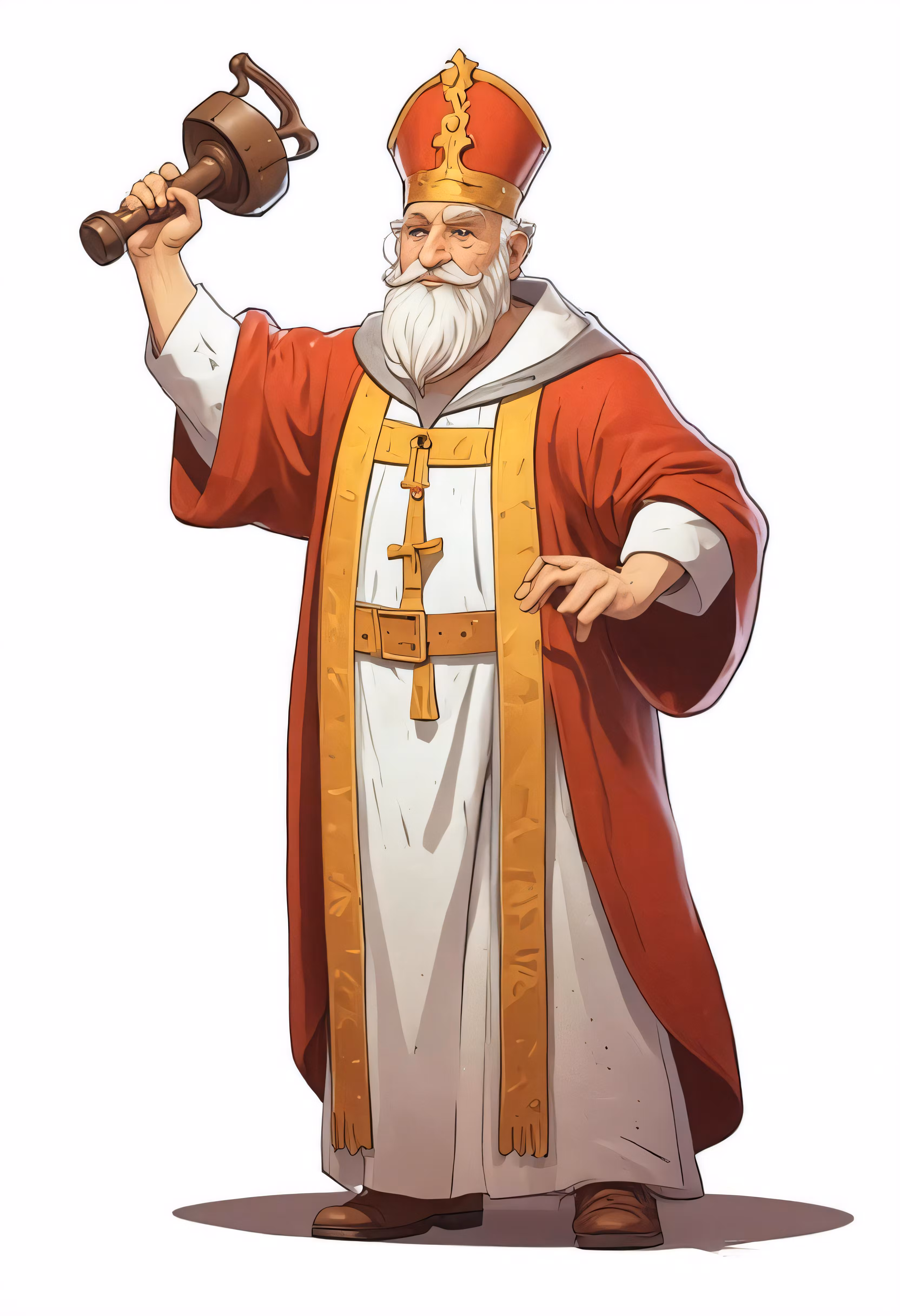 High resolution picture, free to use, the official logo for the 50 /the priest is holding a hammer and wearing red