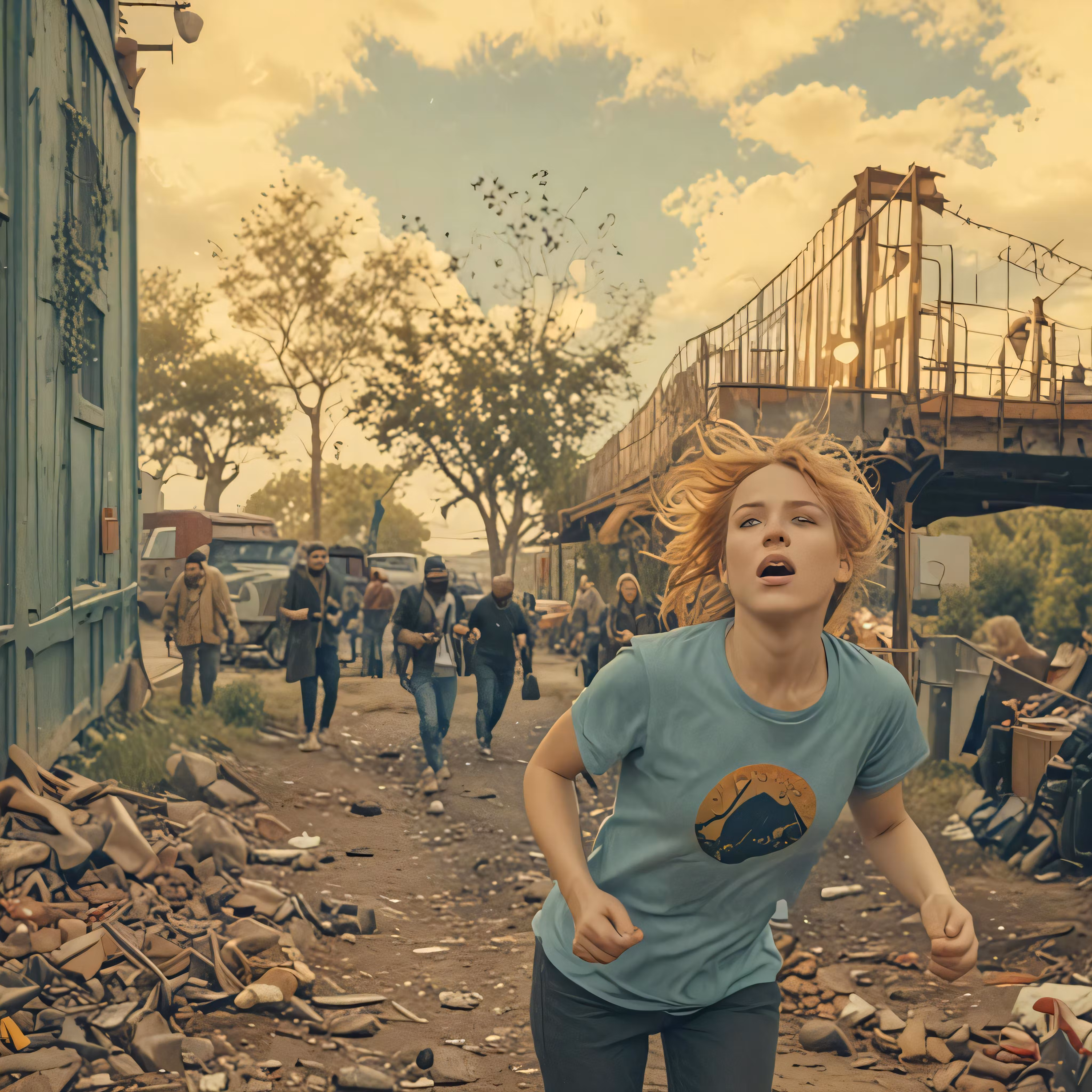 High resolution picture, free to use, the official logo for the 50 /the young girl running along the dirty road in front of people
