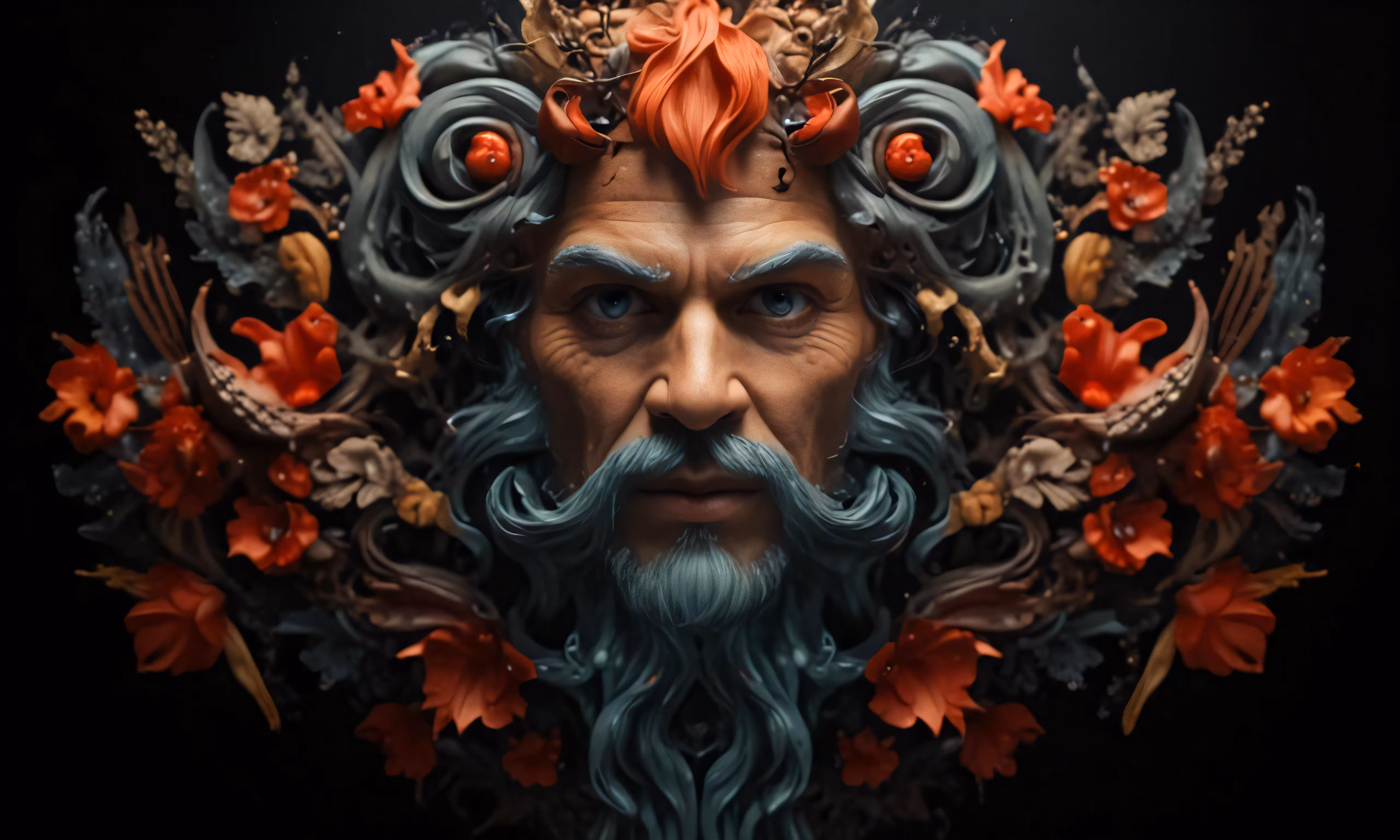High resolution picture, free to use, the official logo for the 50 /this is a head portrait of a man with red flowers and branches around his head