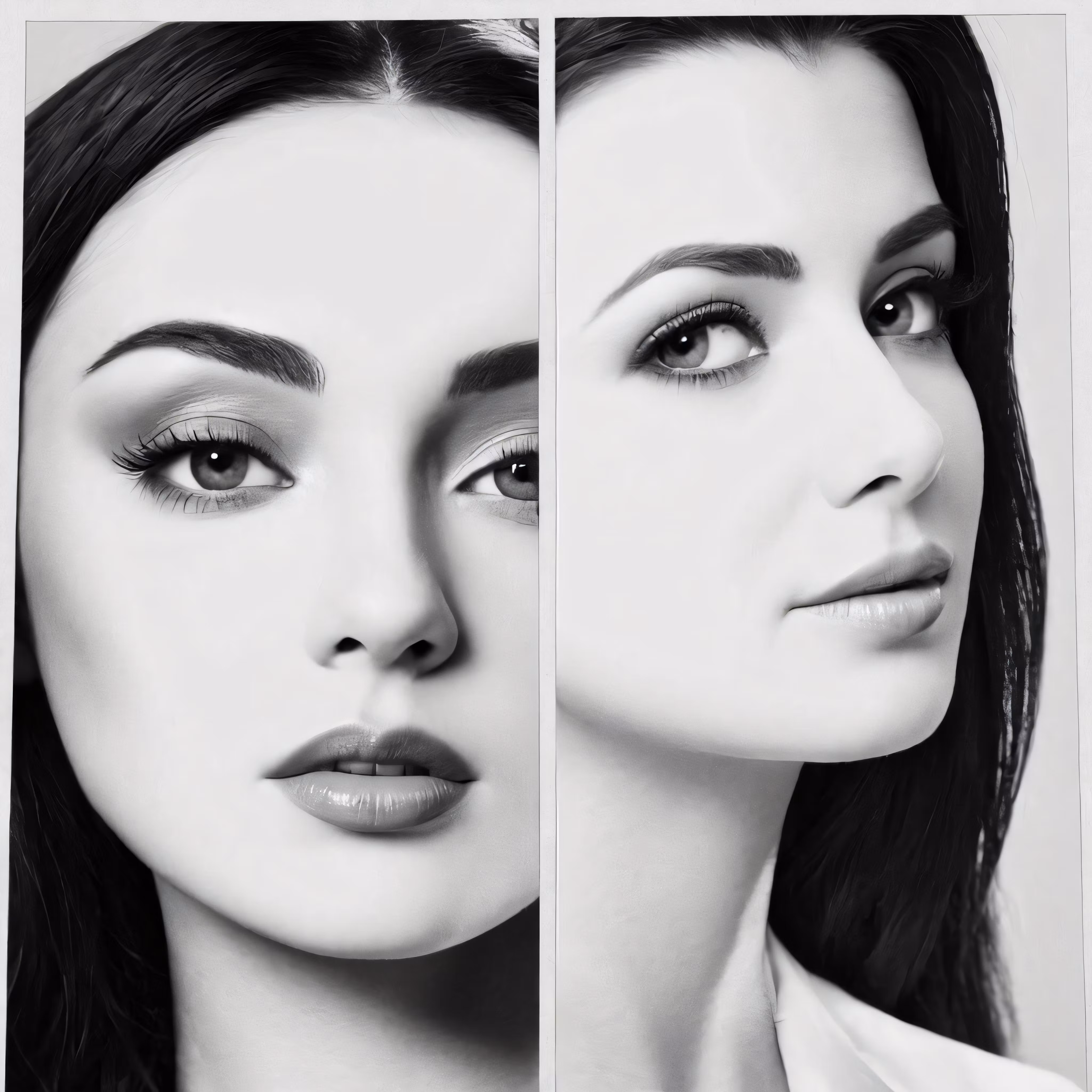 High resolution picture, free to use, the official logo for the 50 /two pictures side by side one with eyes closed and the other with lips closed