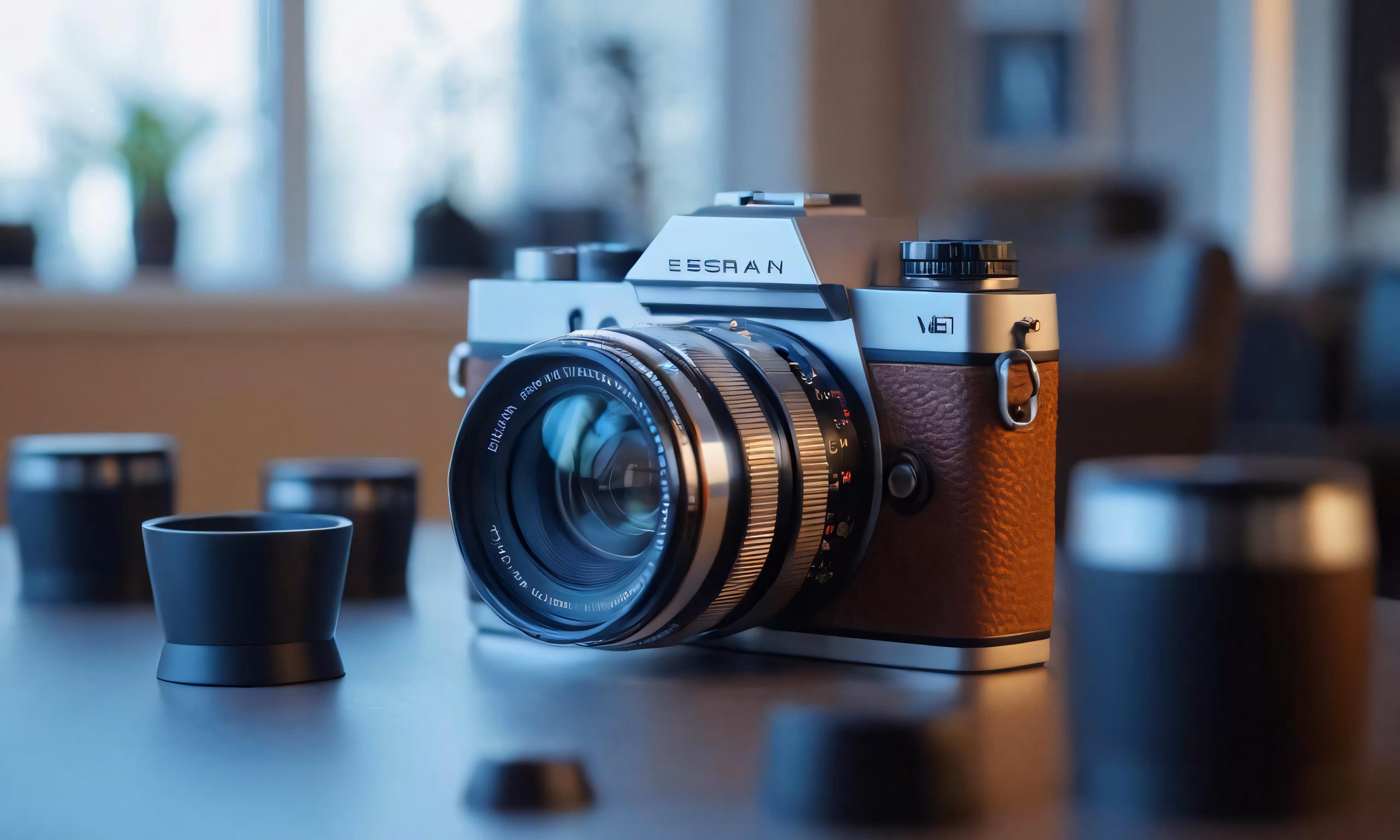 High resolution picture, free to use, the old camera is sitting on a wooden table