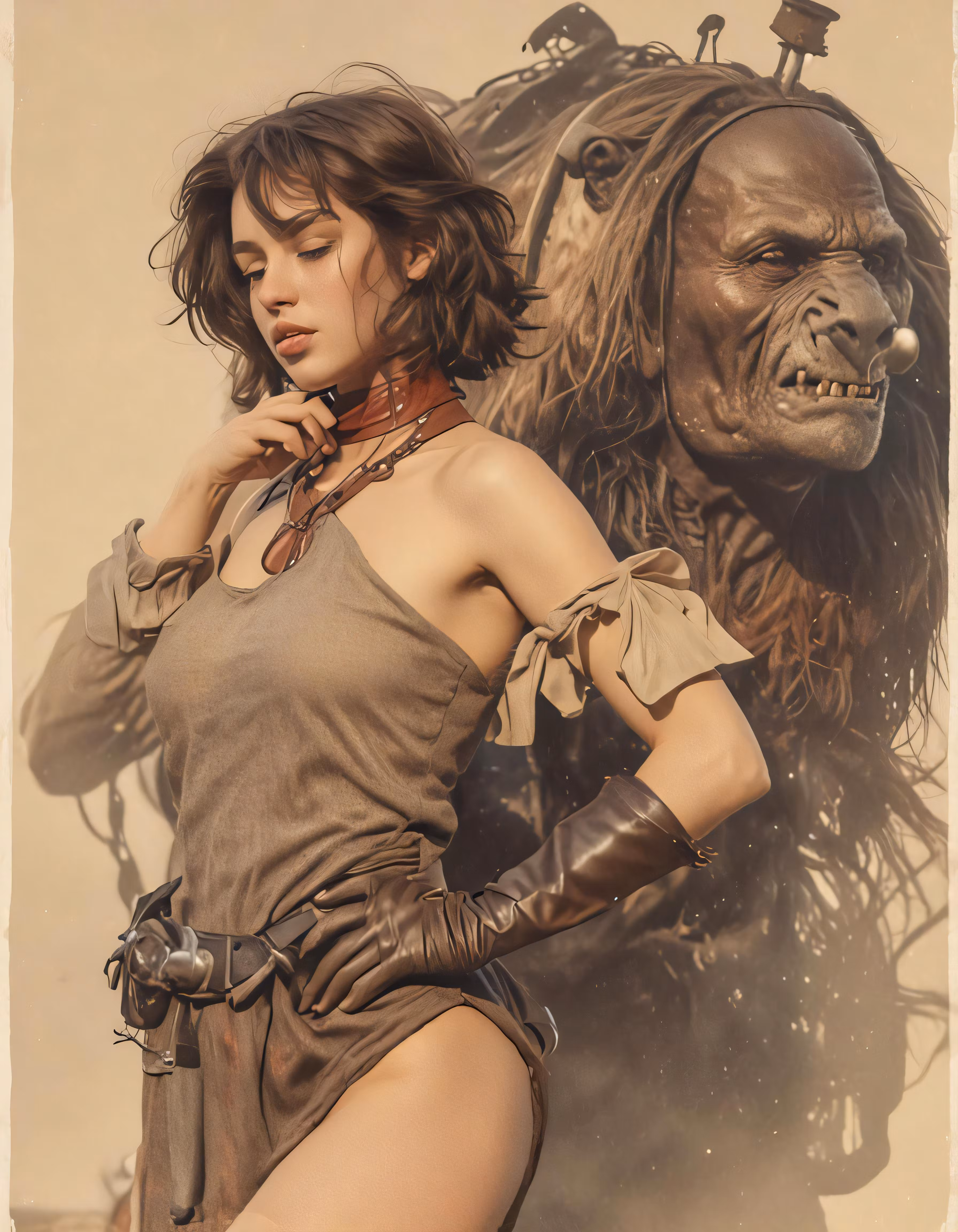 High resolution picture, free to use, the painting shows a woman in a sexy costume and one horse
