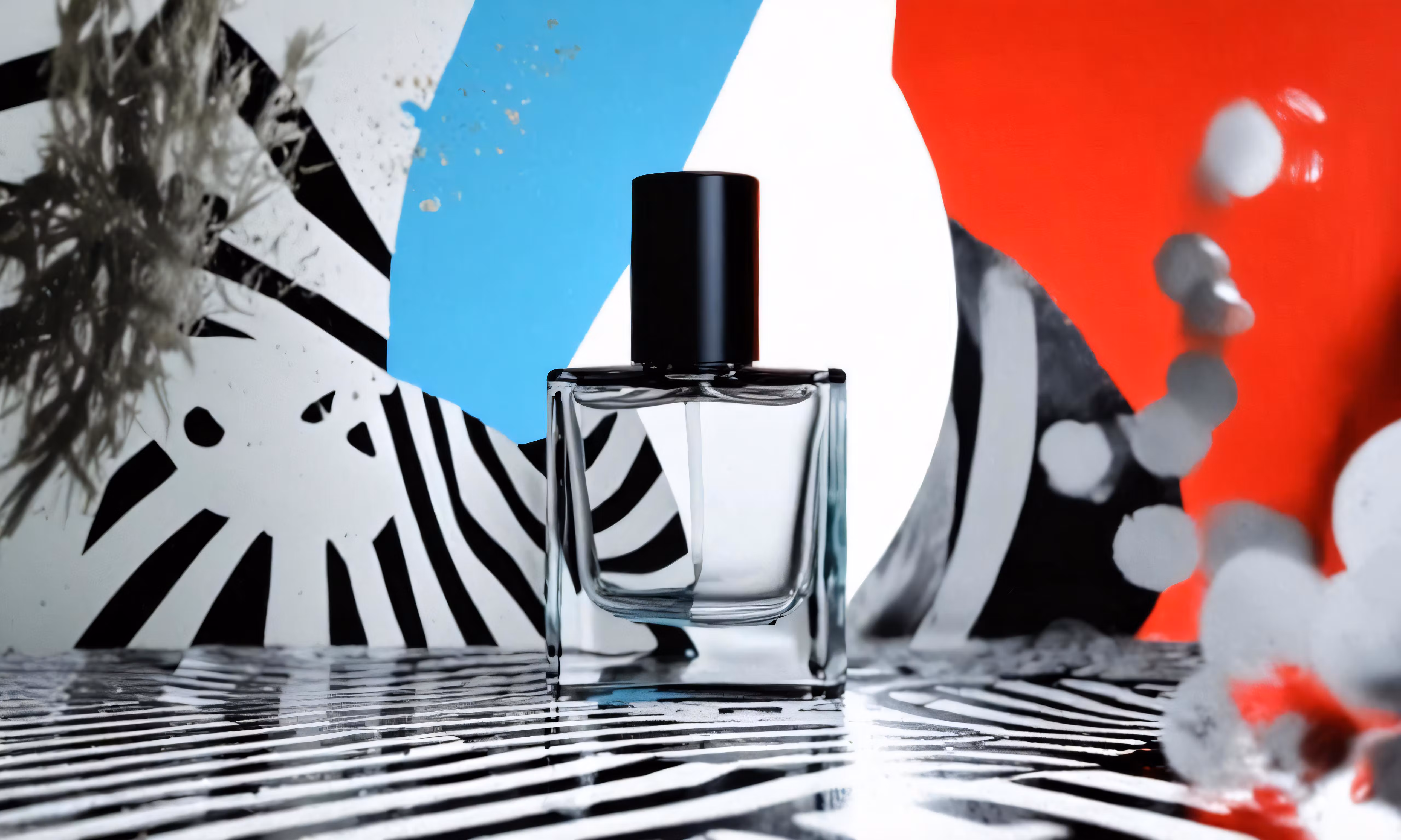 High resolution picture, free to use, the perfume bottle is near a wall decoration