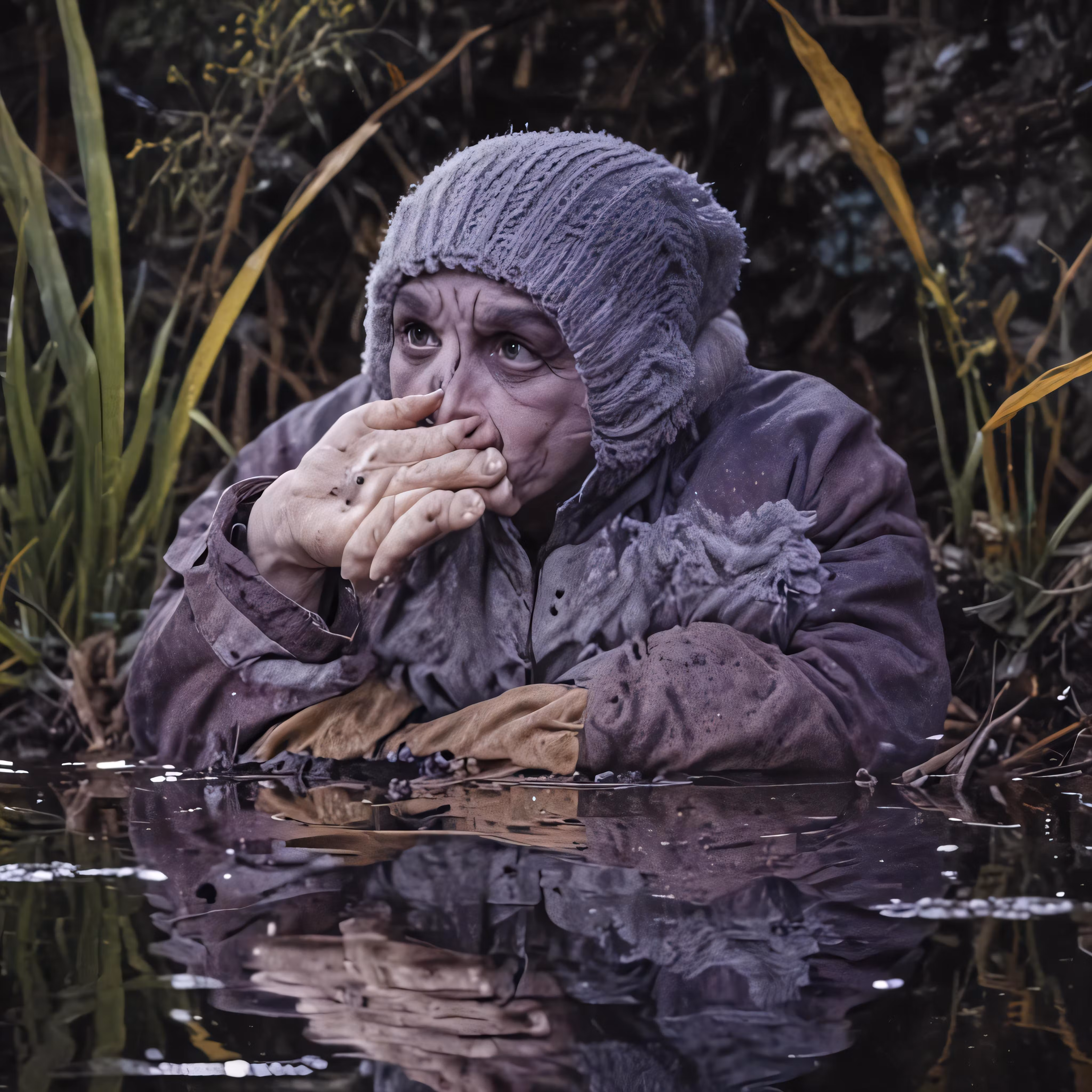 High resolution picture, free to use, the person is wearing a hat and holding their hands near her mouth