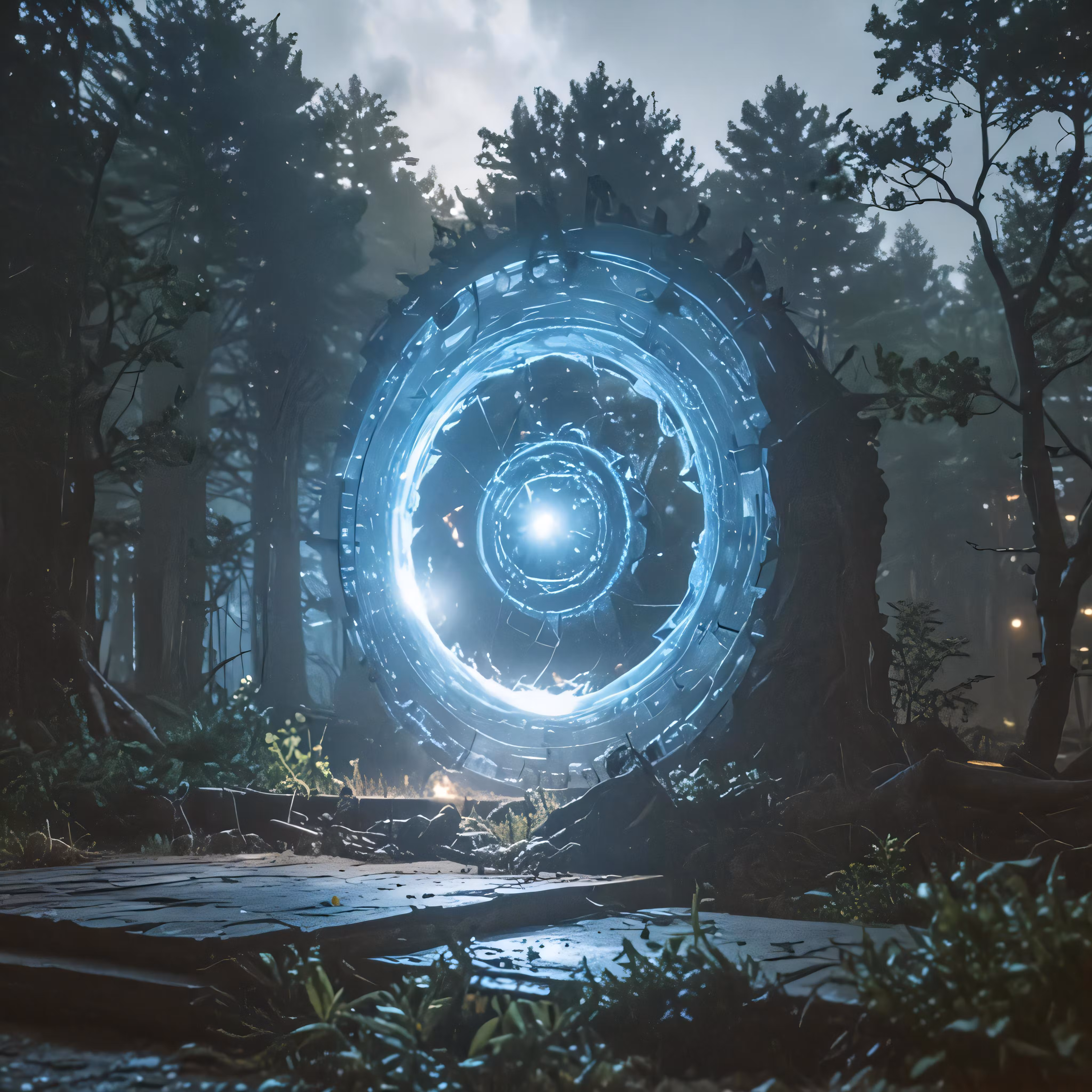High resolution picture, free to use, the portal of an illuminated orb in the woods