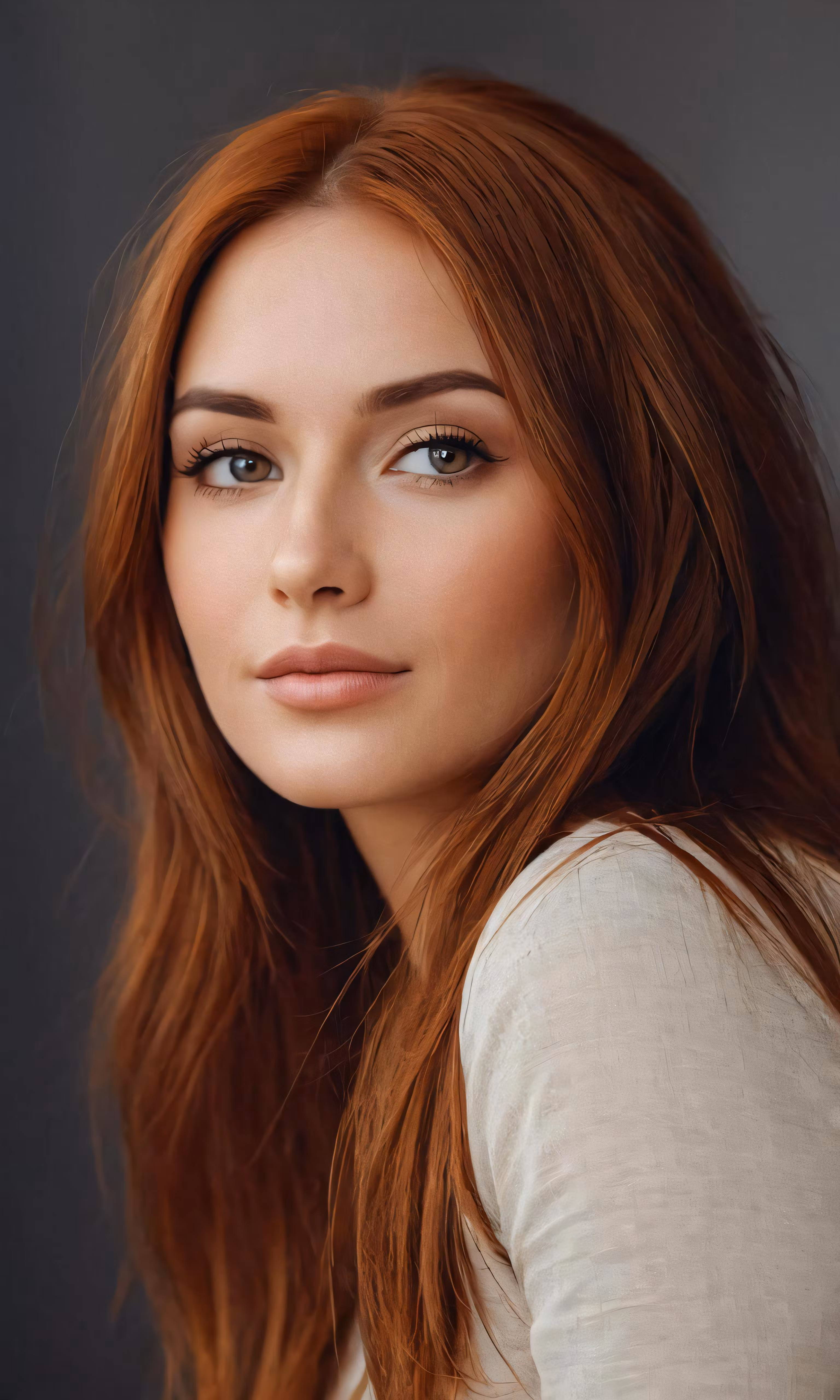 High resolution picture, free to use, the red   headed young woman in white top is looking at the camera