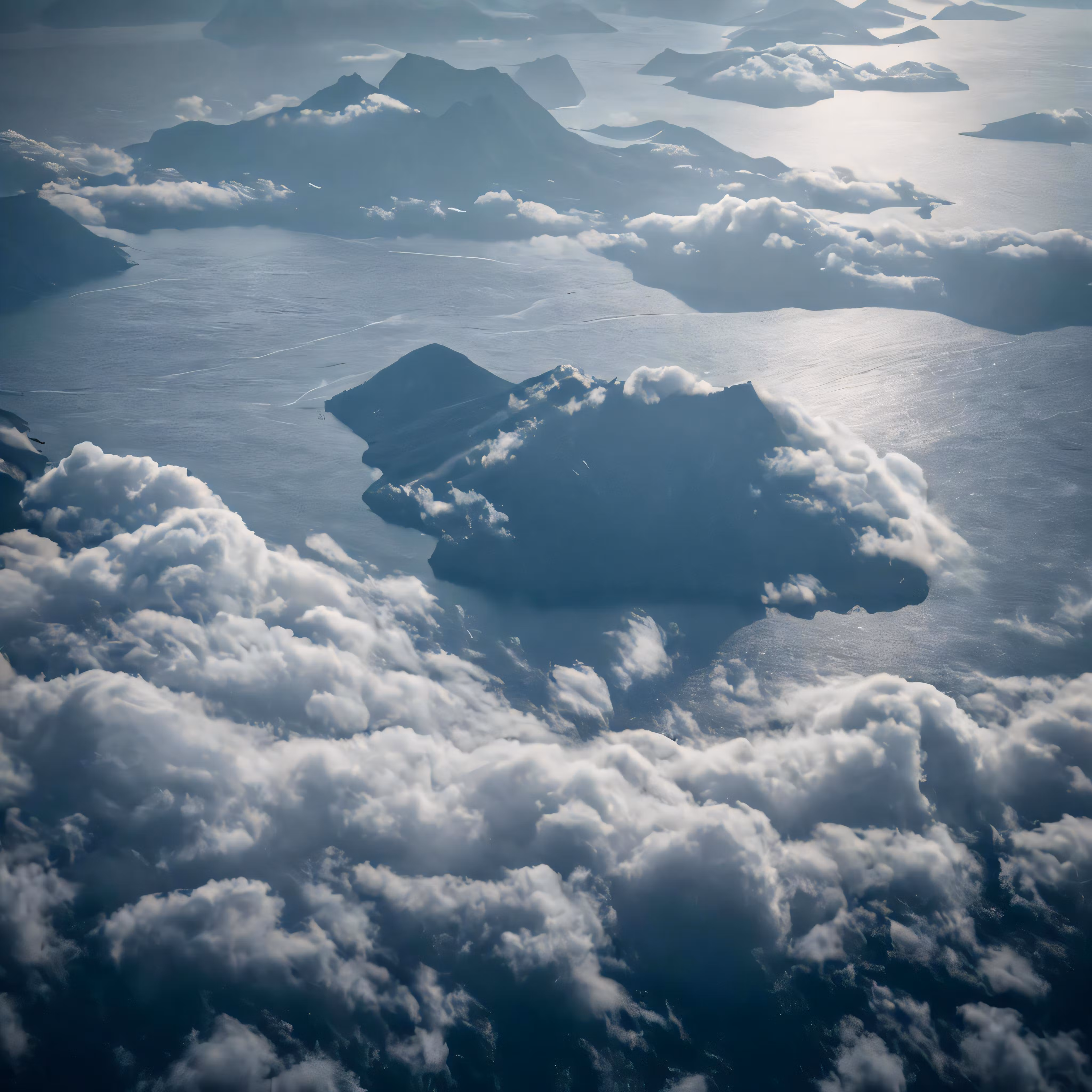 High resolution picture, free to use, the sky is full of clouds as the ocean looks over land