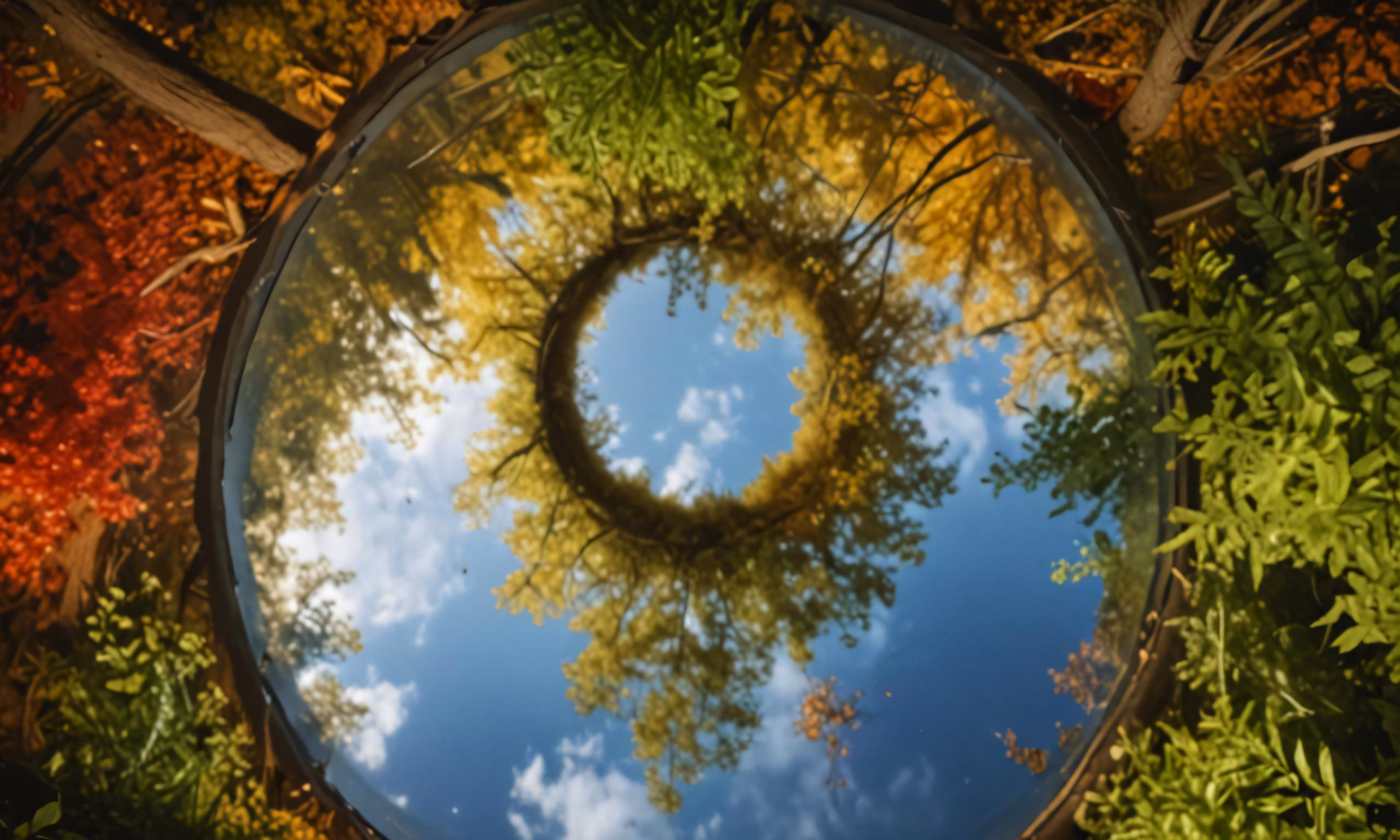 High resolution picture, free to use, the sky is seen through the top of a circular mirror