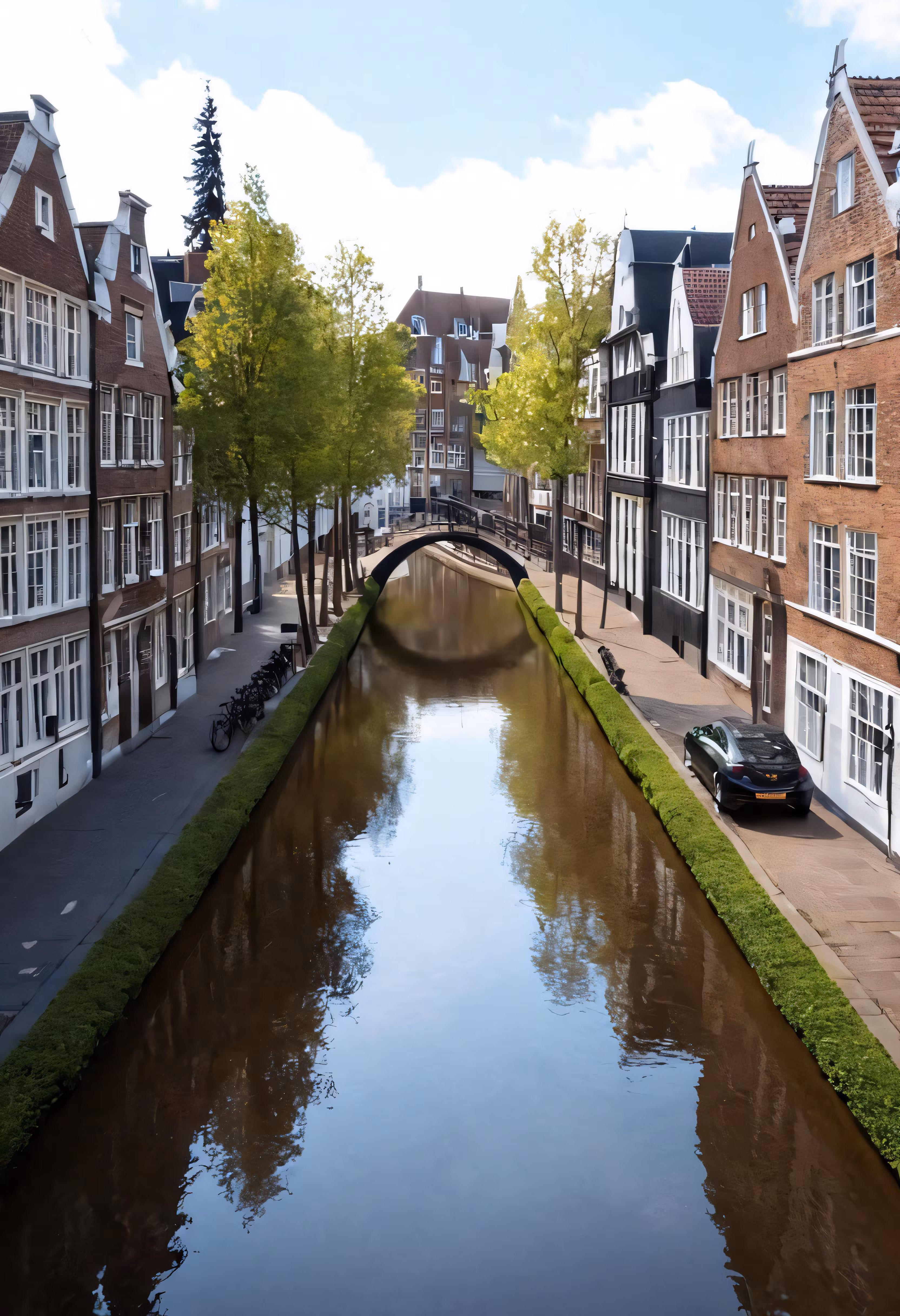 High resolution picture, free to use, the street is lined with houses and small river