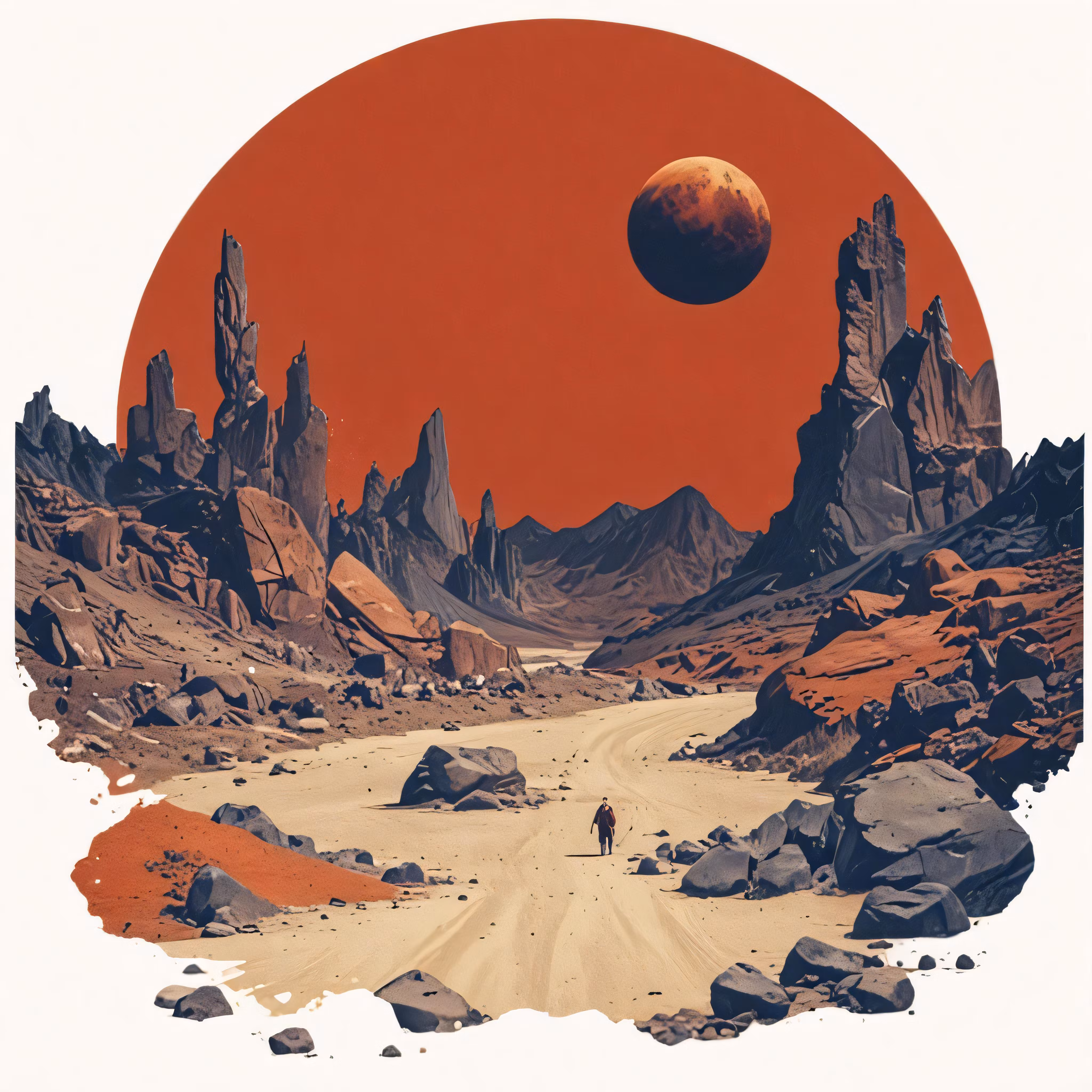 High resolution picture, free to use, the sun and an orange circle are in the desert