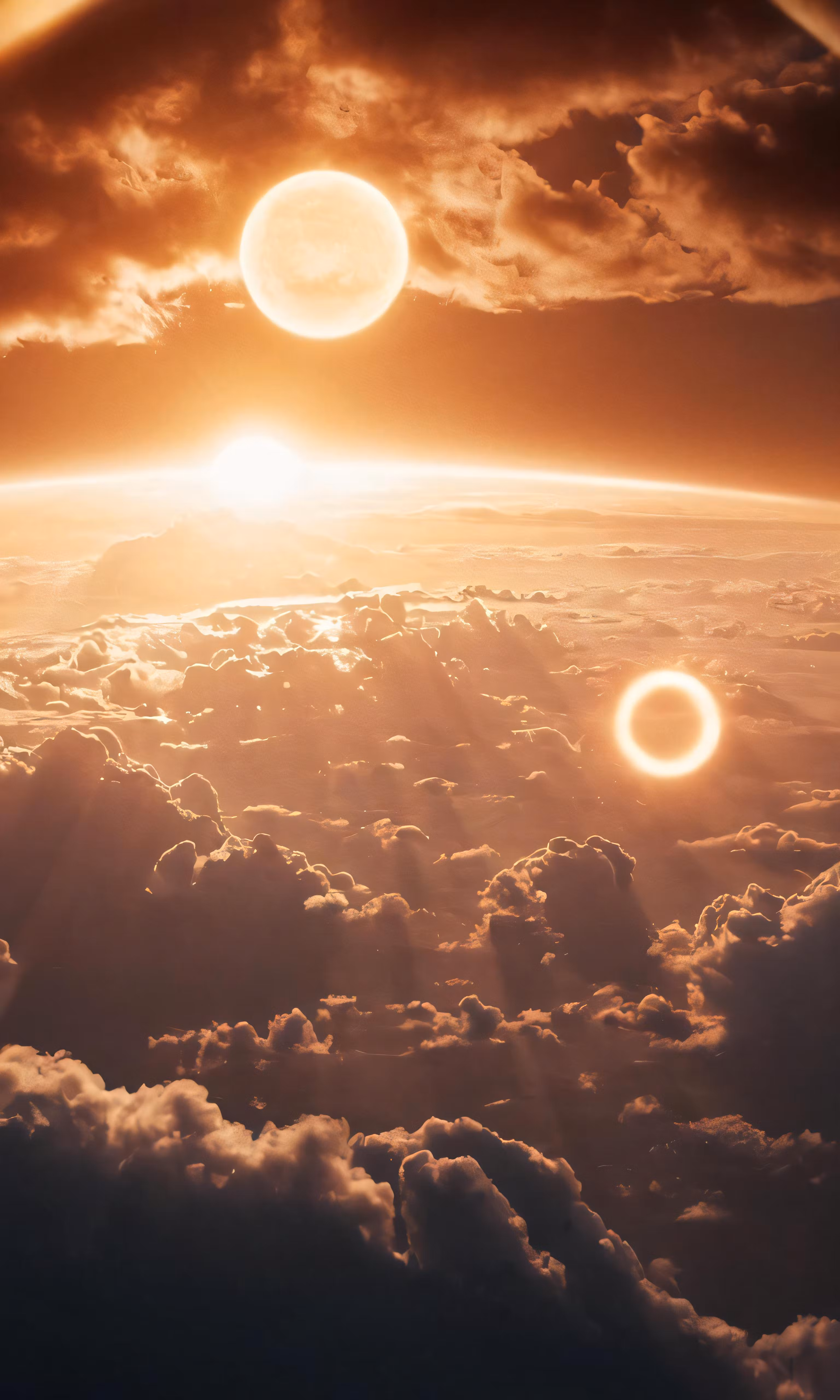 High resolution picture, free to use, the sun is setting over clouds with circles in it