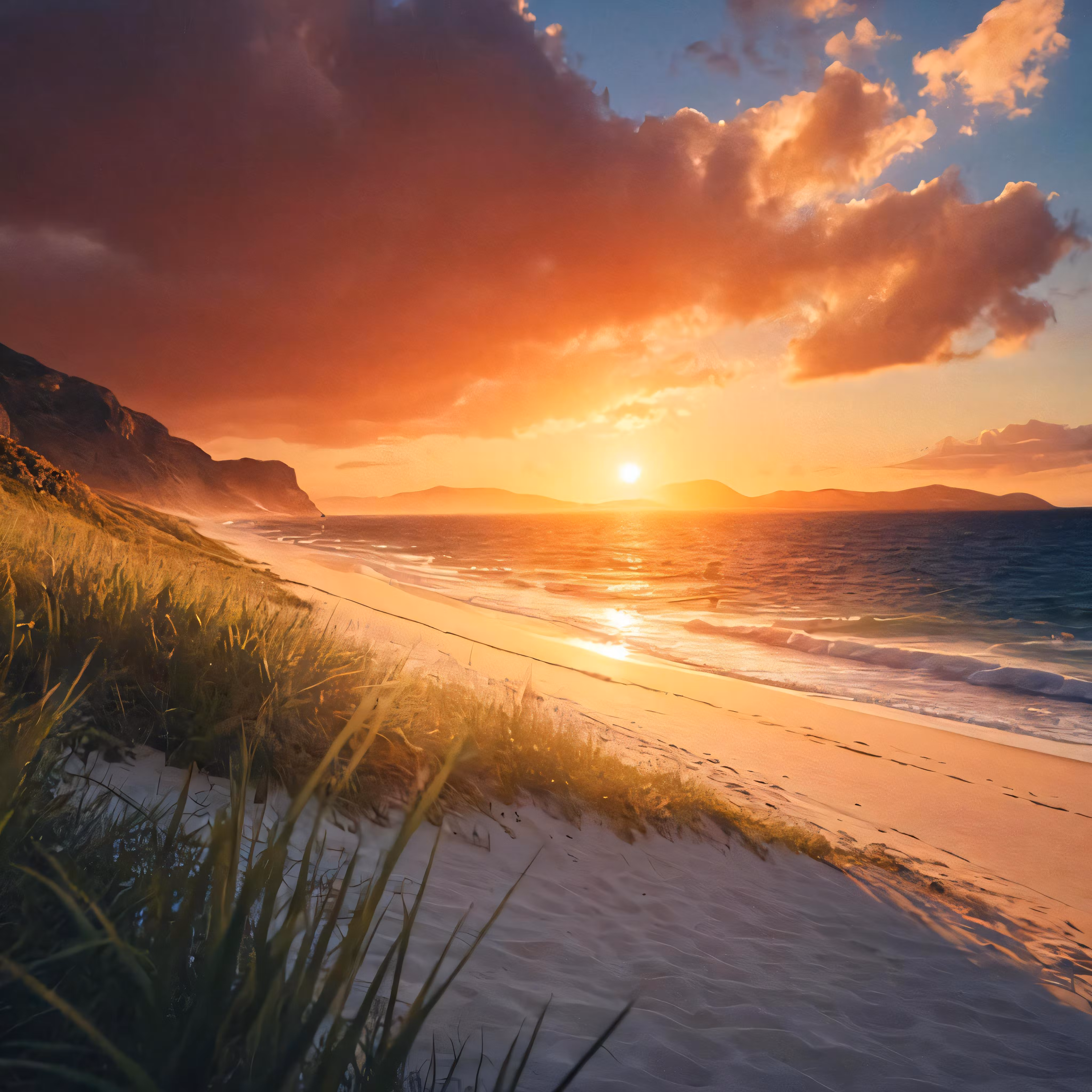 High resolution picture, free to use, the sun is shining down on a sandy beach