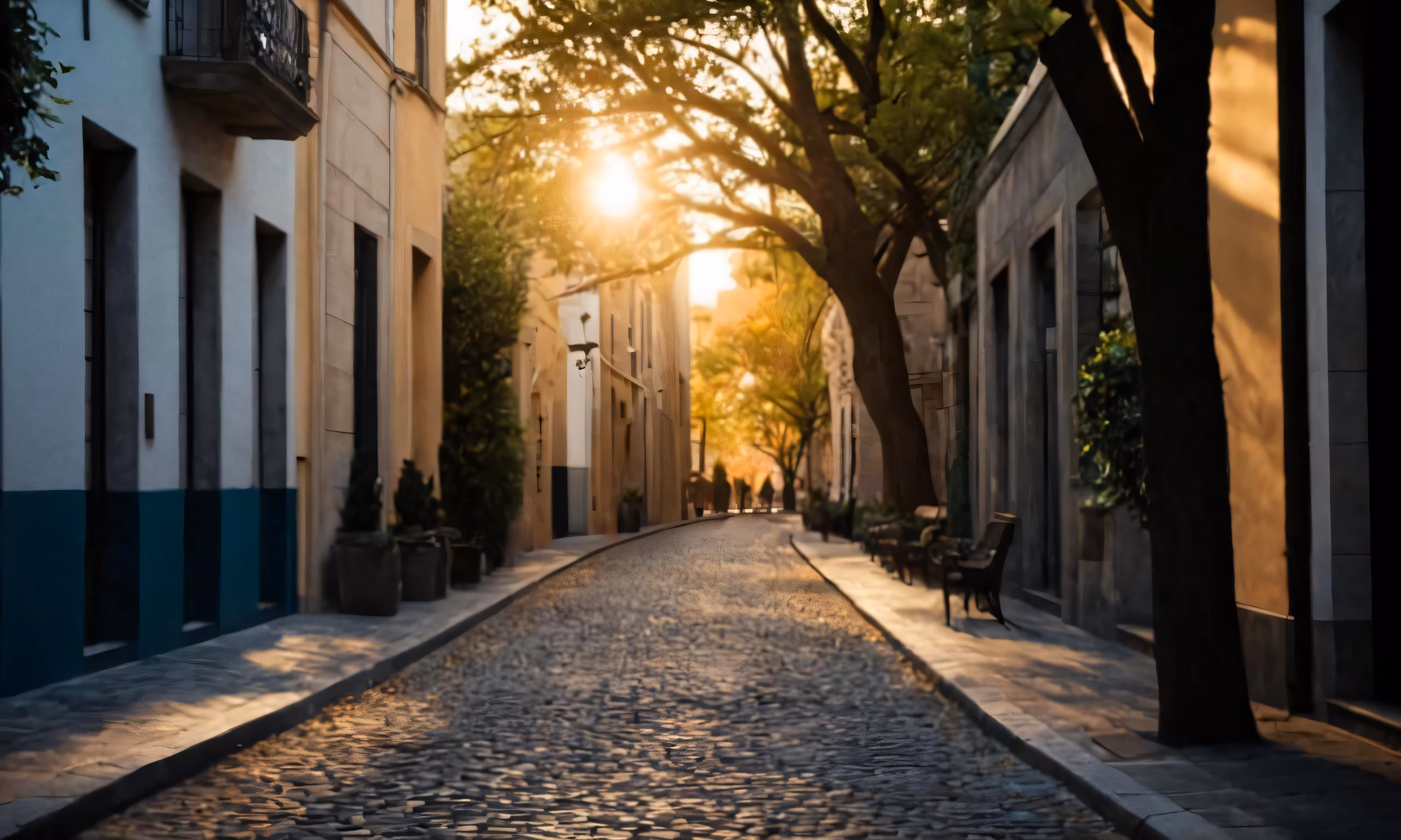 High resolution picture, free to use, the sun is shining down on the street by buildings