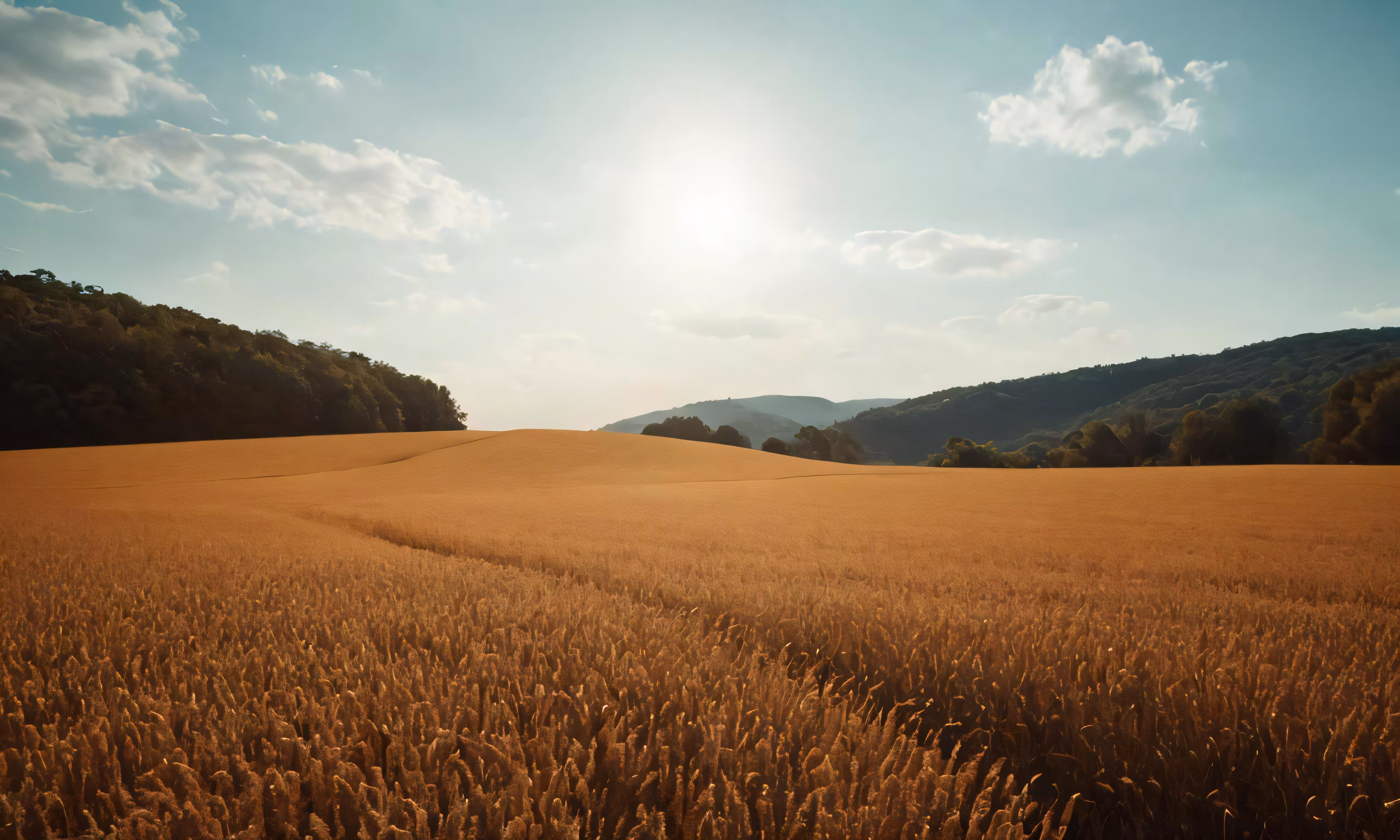 High resolution picture, free to use, the sun shines over a wheat field