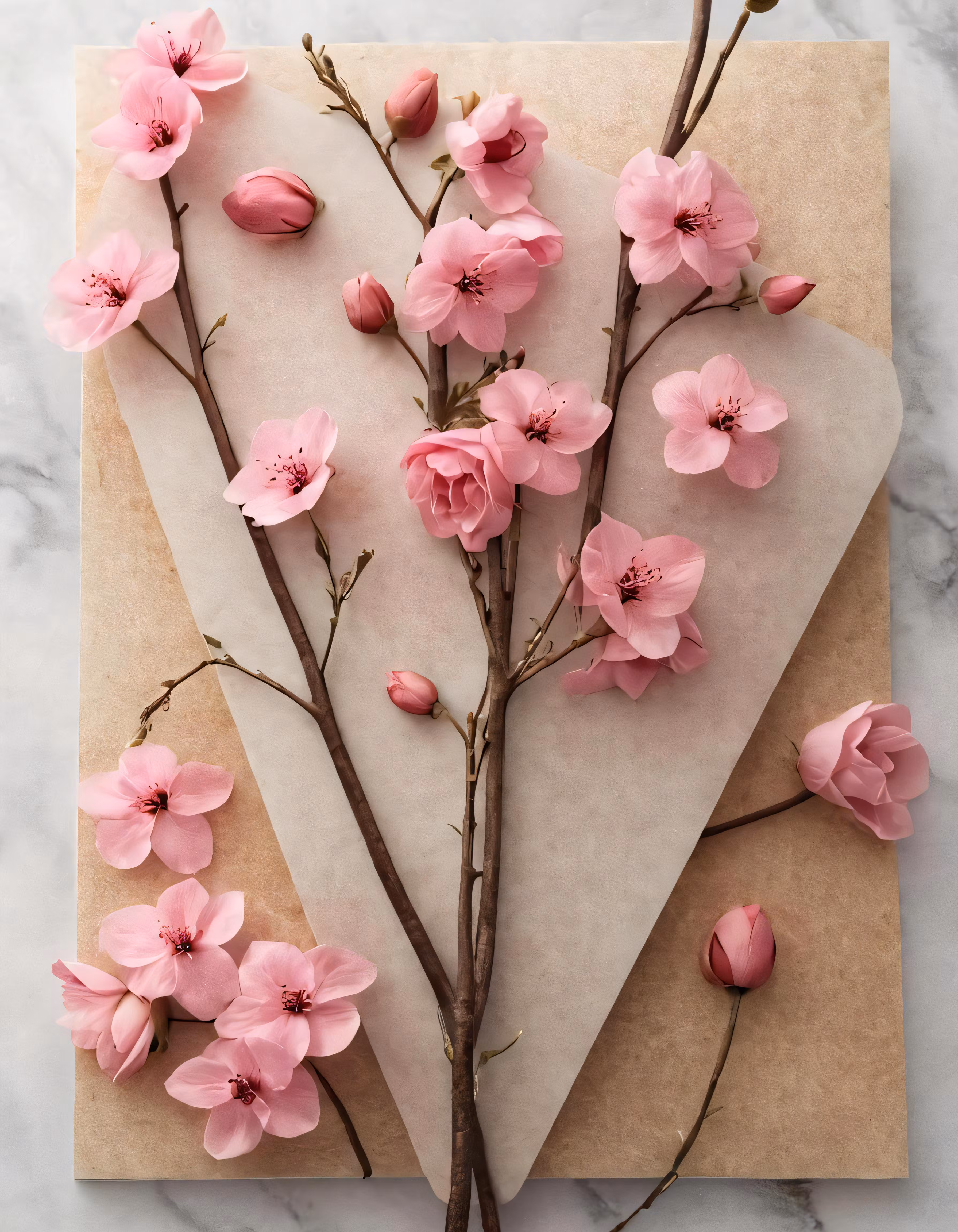 High resolution picture, free to use, the top of a pink flower bouquet on a piece of paper