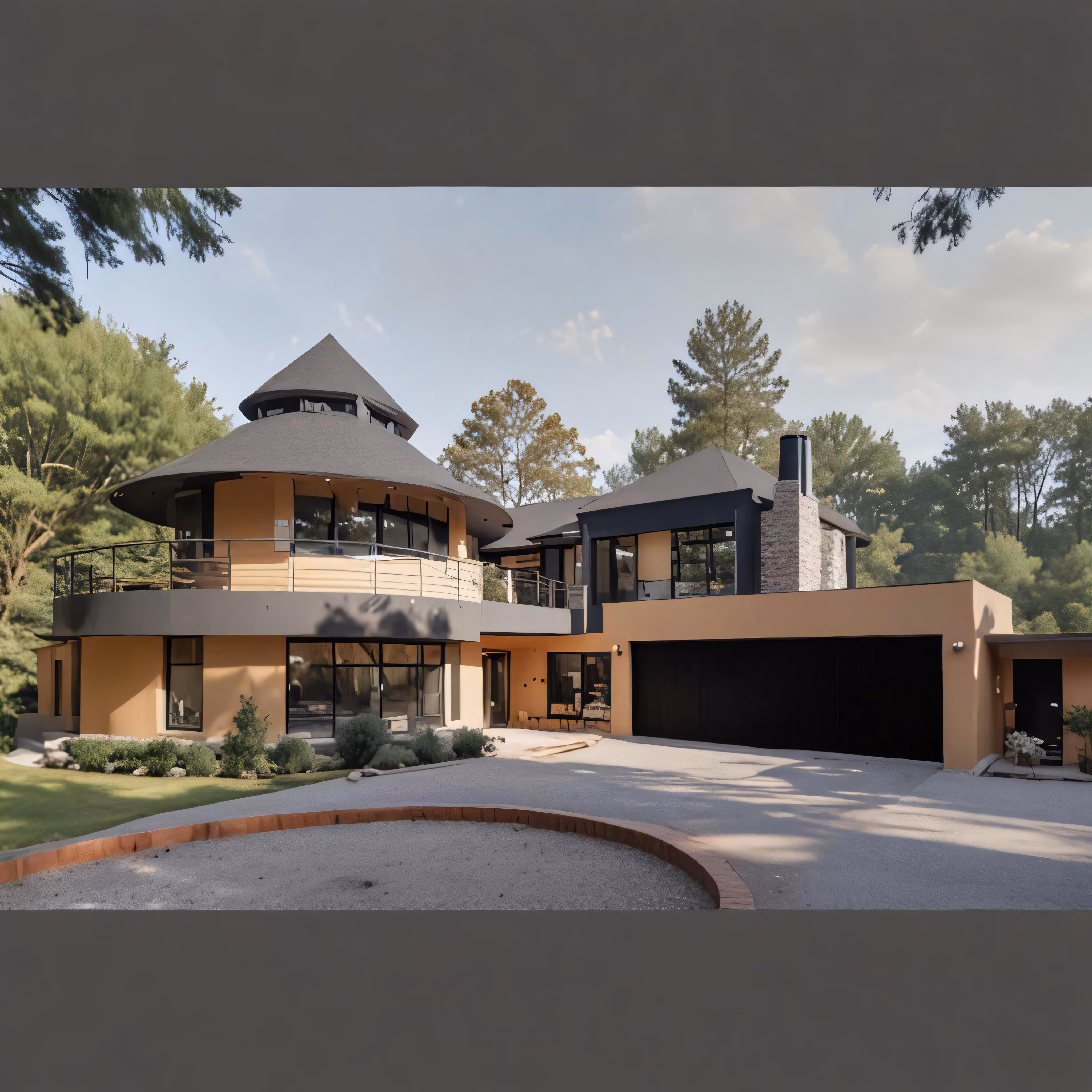 High resolution picture, free to use, the view of an extravagant house surrounded by trees