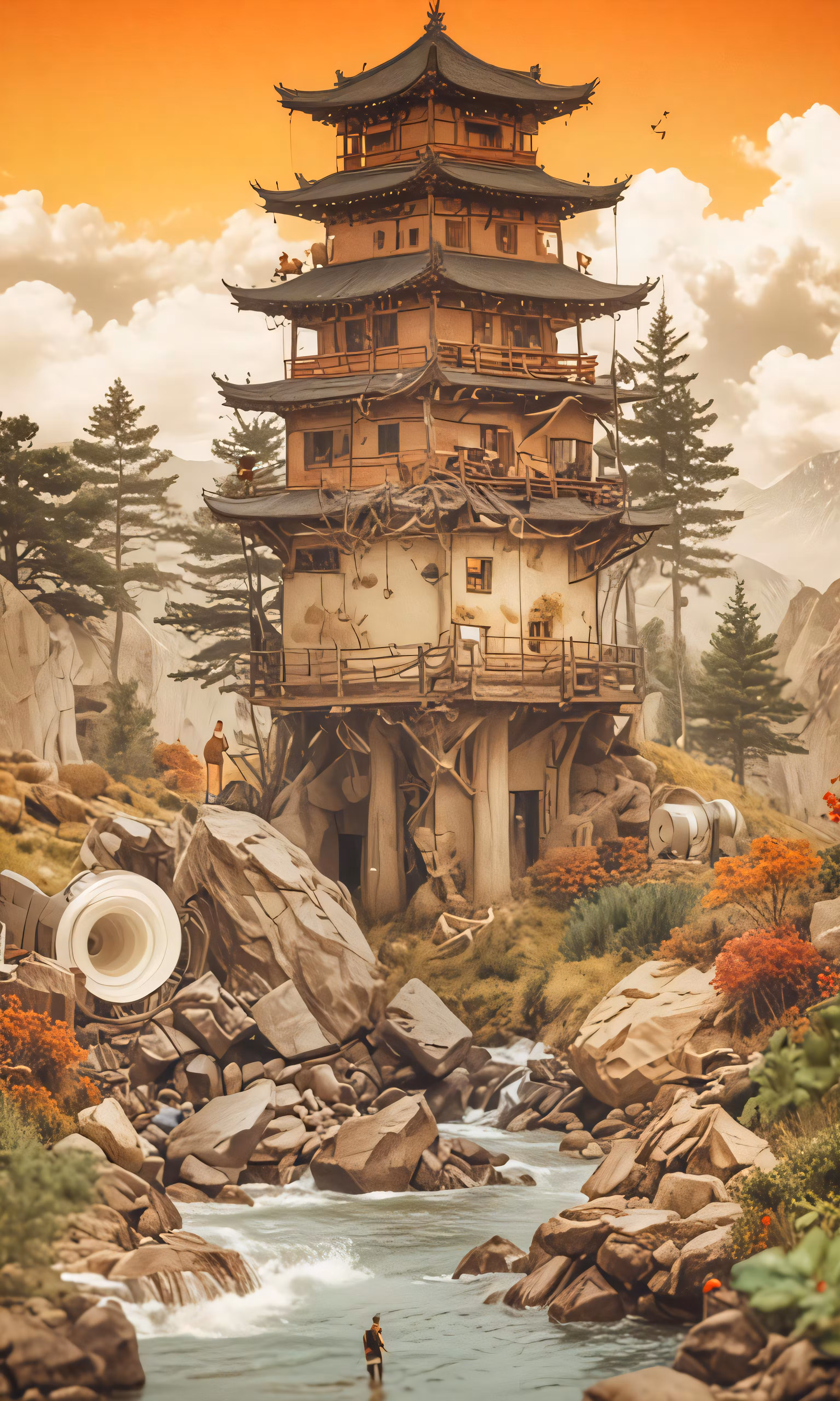 High resolution picture, free to use, the water is clear and crystal and this is a painting of an old house