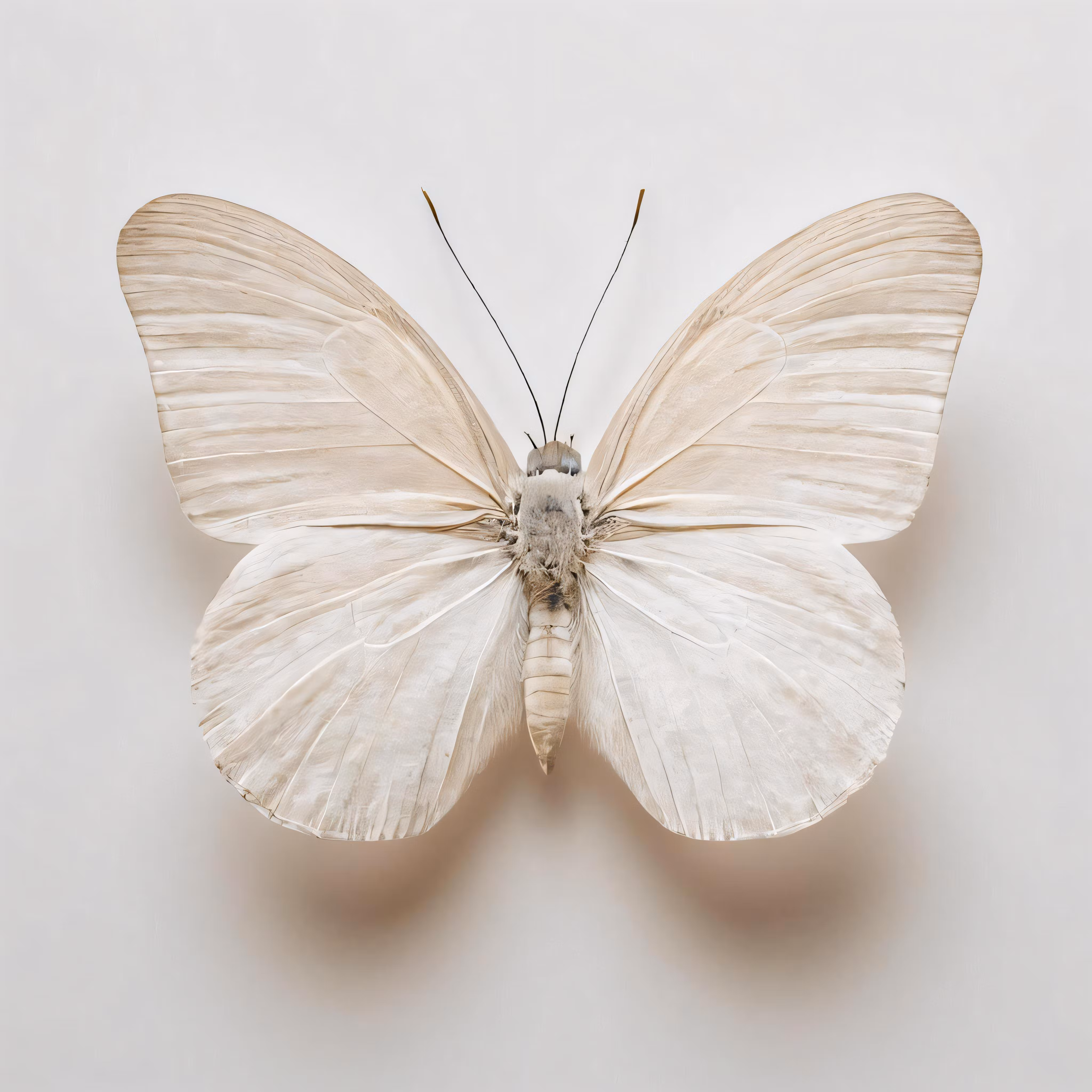 High resolution picture, free to use, the white butterfly has long wings and sits on its back