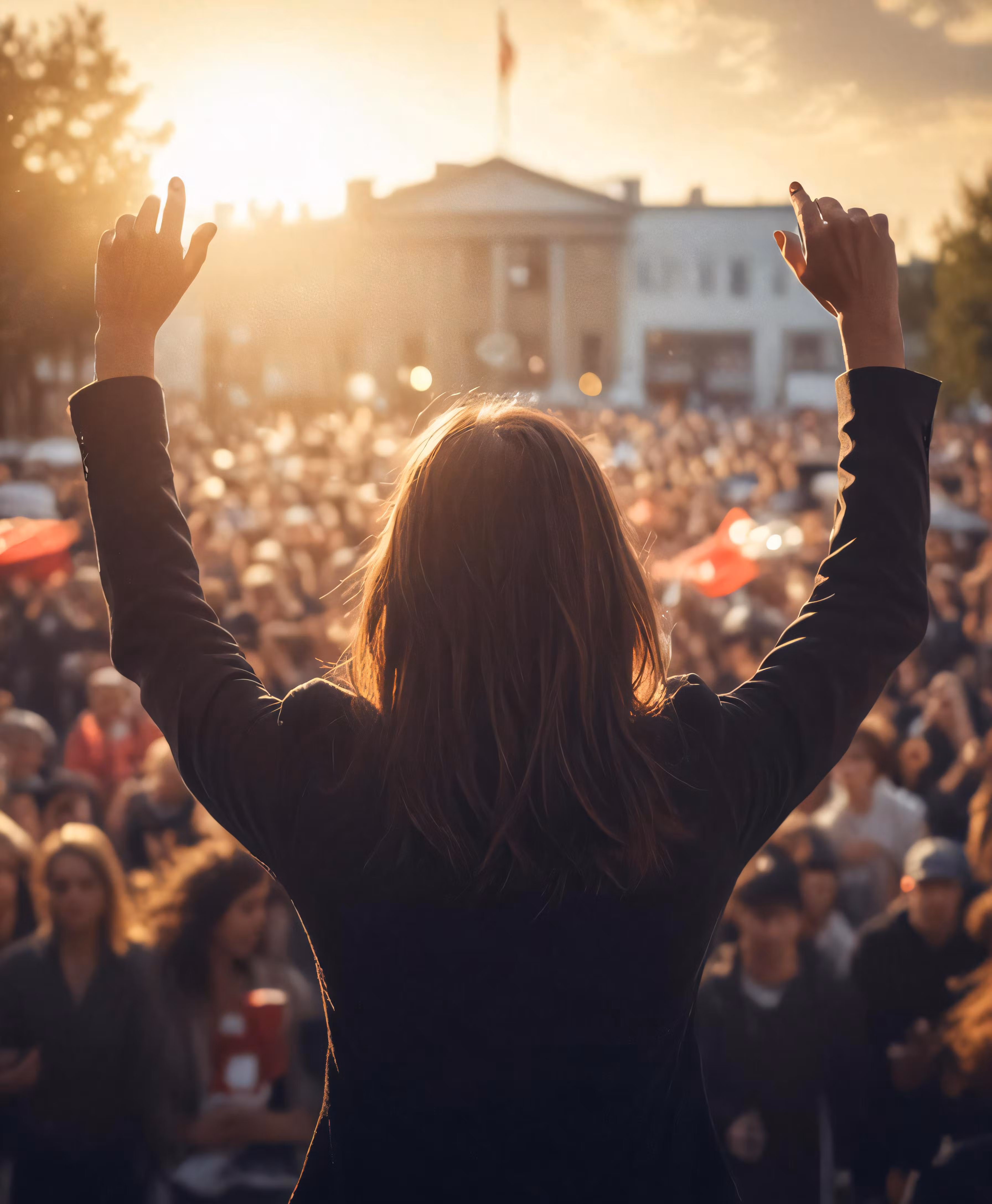 High resolution picture, free to use, the woman is holding her hands up in celebration
