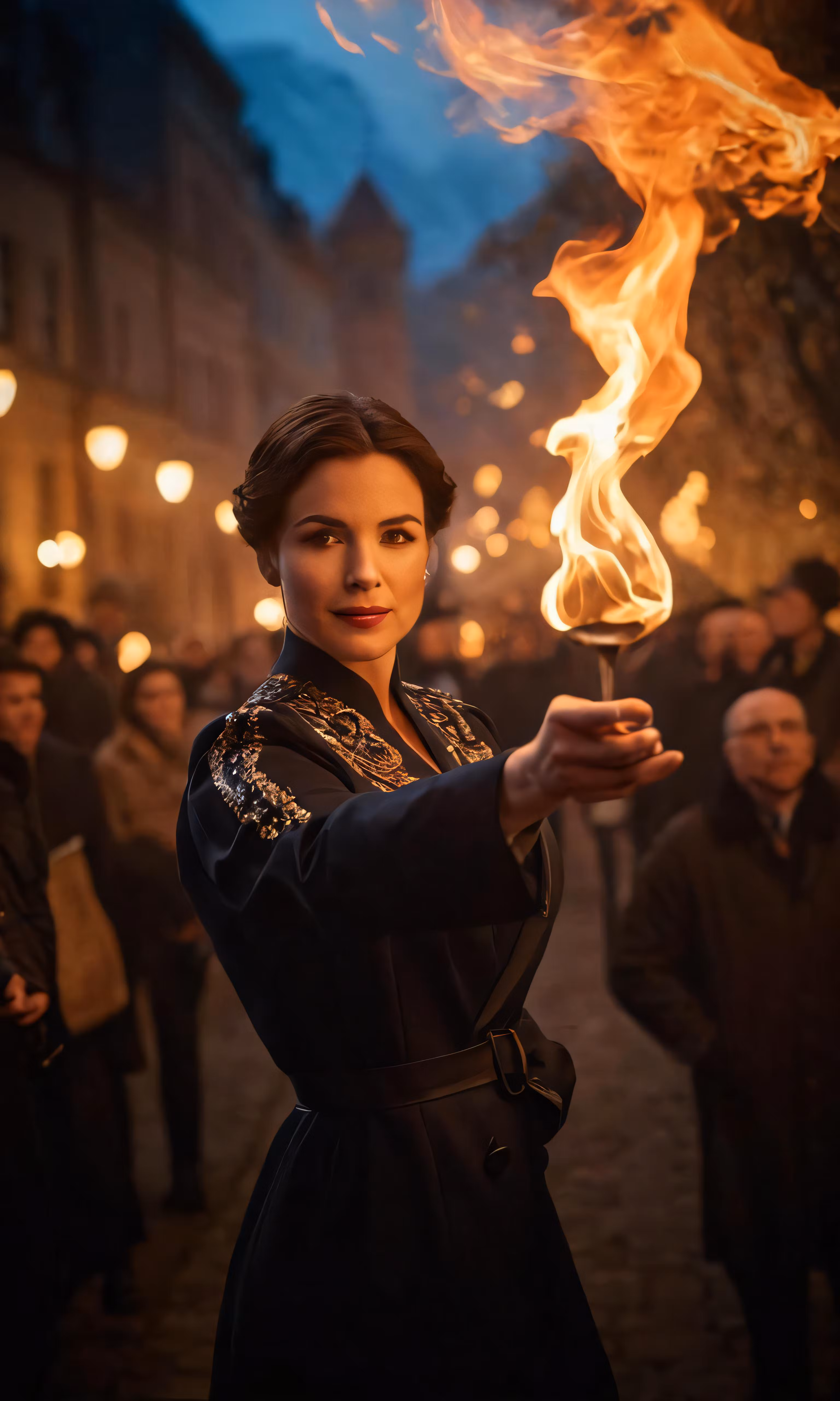 High resolution picture, free to use, the woman is holding up the torches on the street