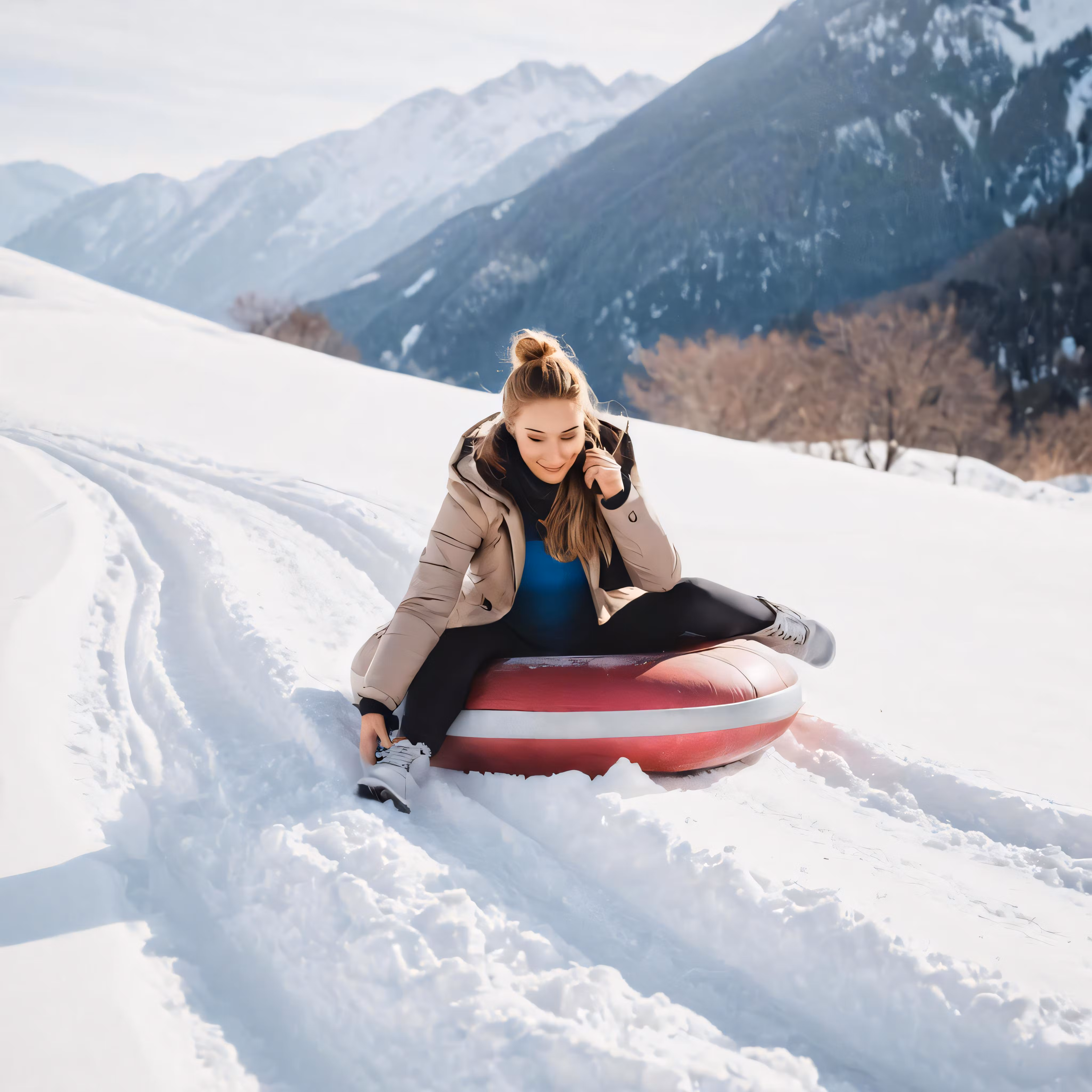High resolution picture, free to use, the woman is in snow gear riding on her body