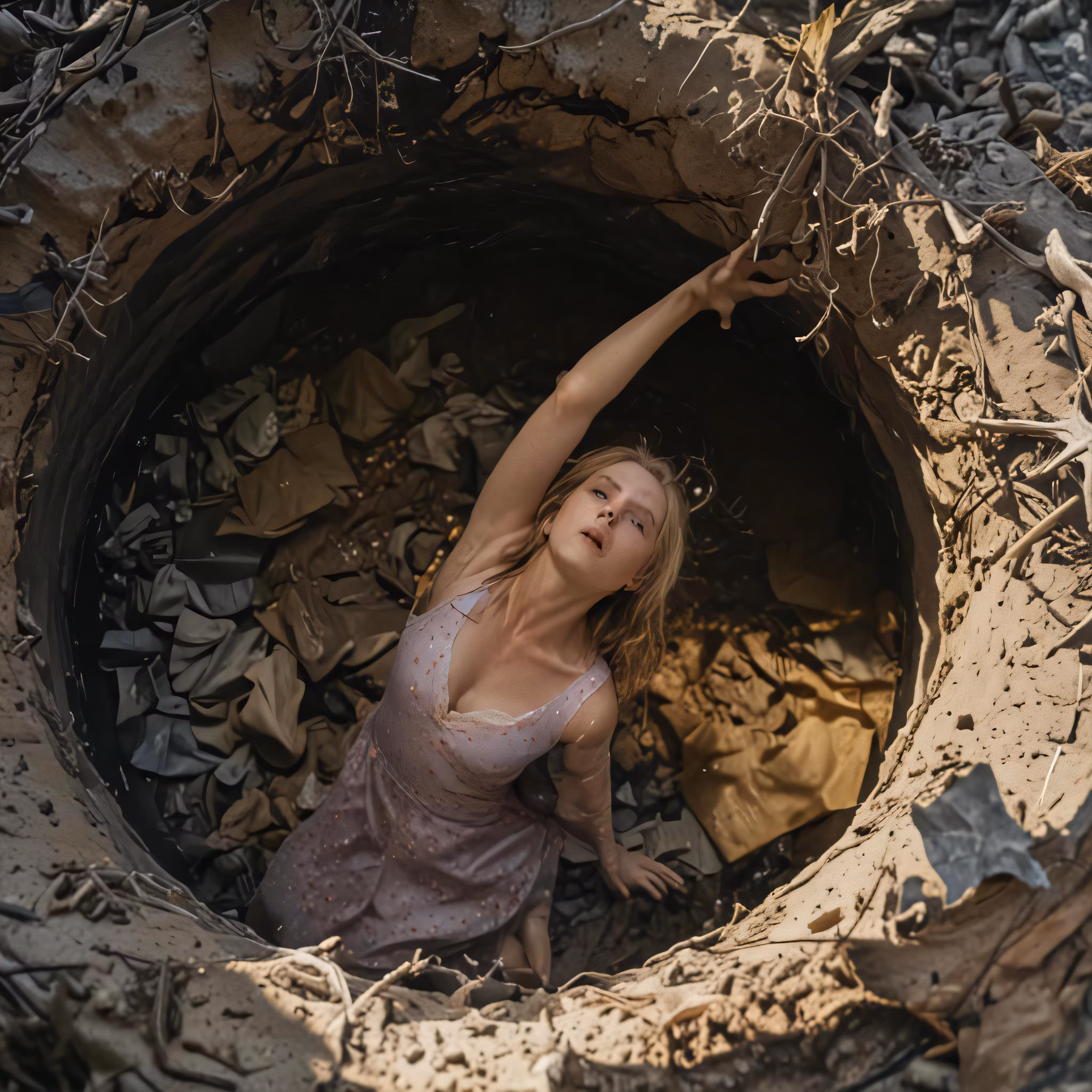 High resolution picture, free to use, the woman is in the hole in the ground