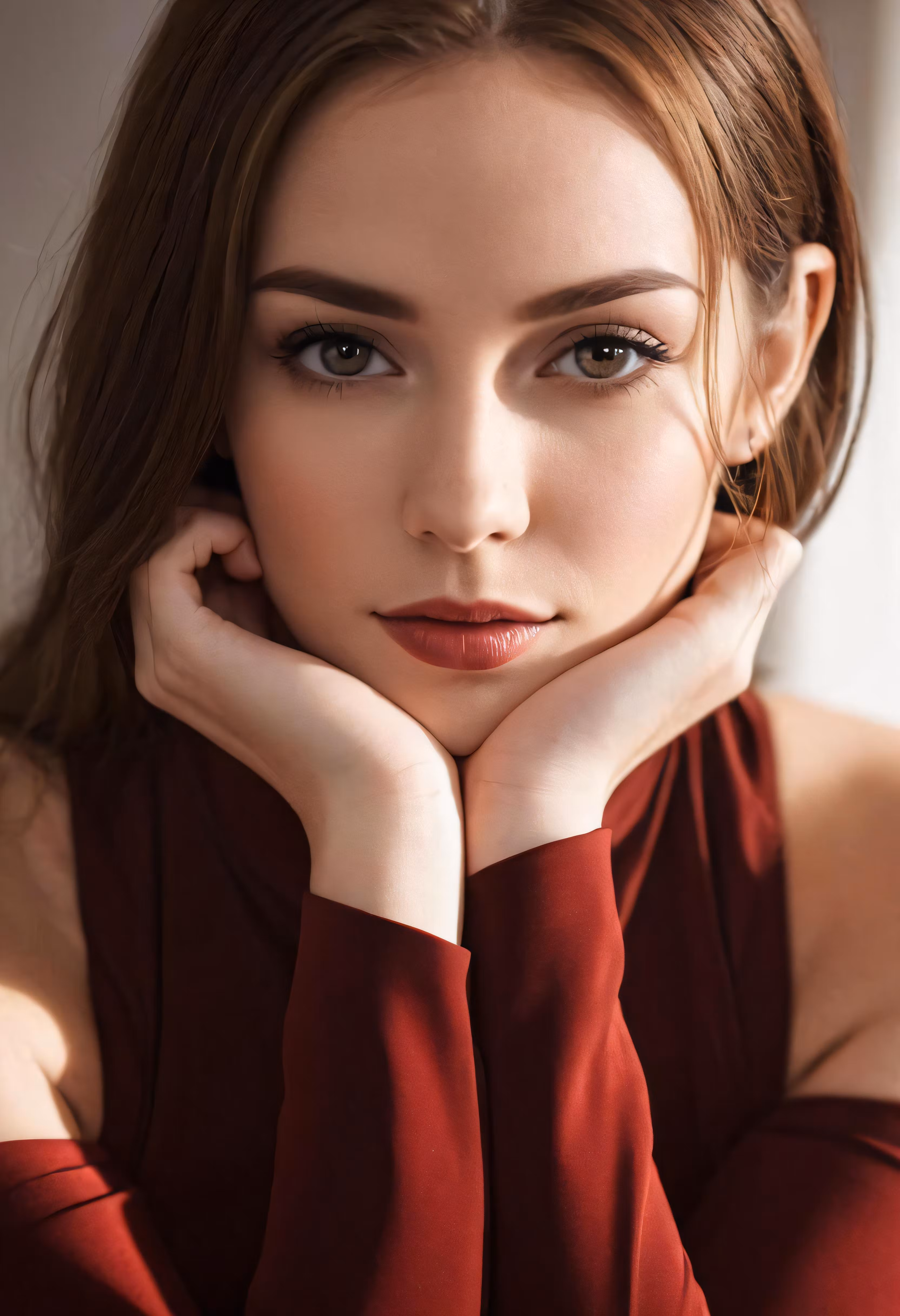 High resolution picture, free to use, the woman is leaning her head on her hand