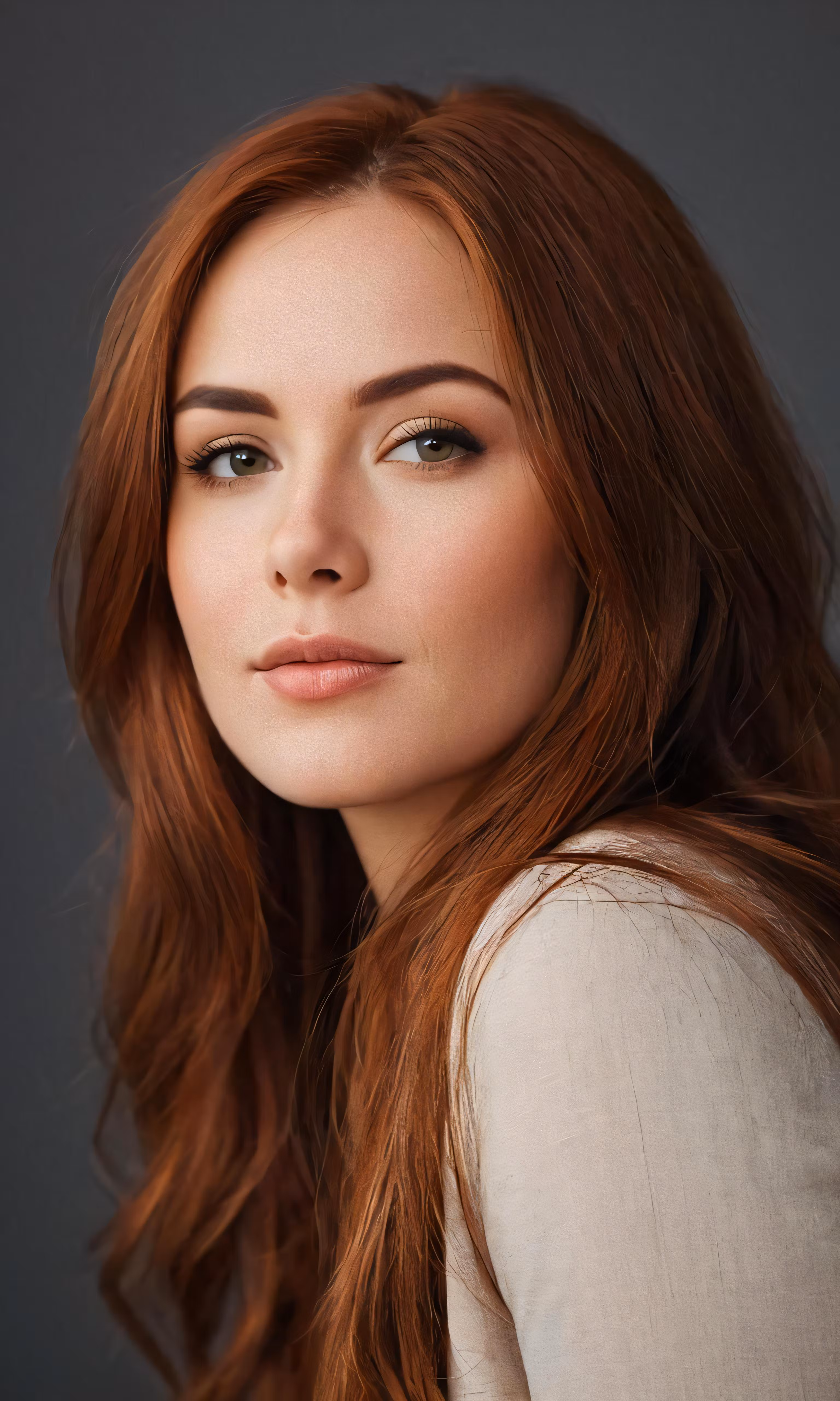 High resolution picture, free to use, the woman is looking into the distance with red hair