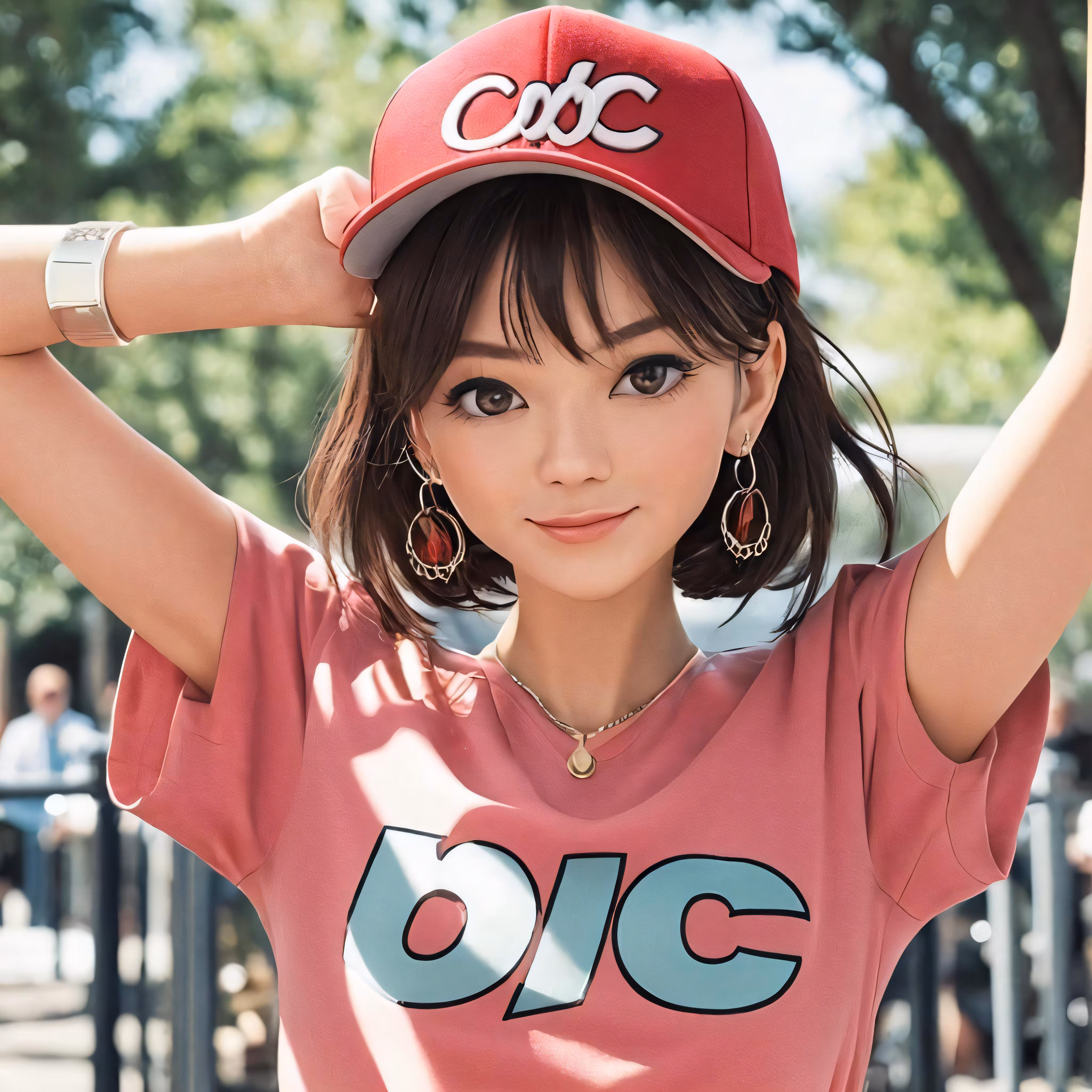 High resolution picture, free to use, the woman is posing for a photo with her hands up and her hat on