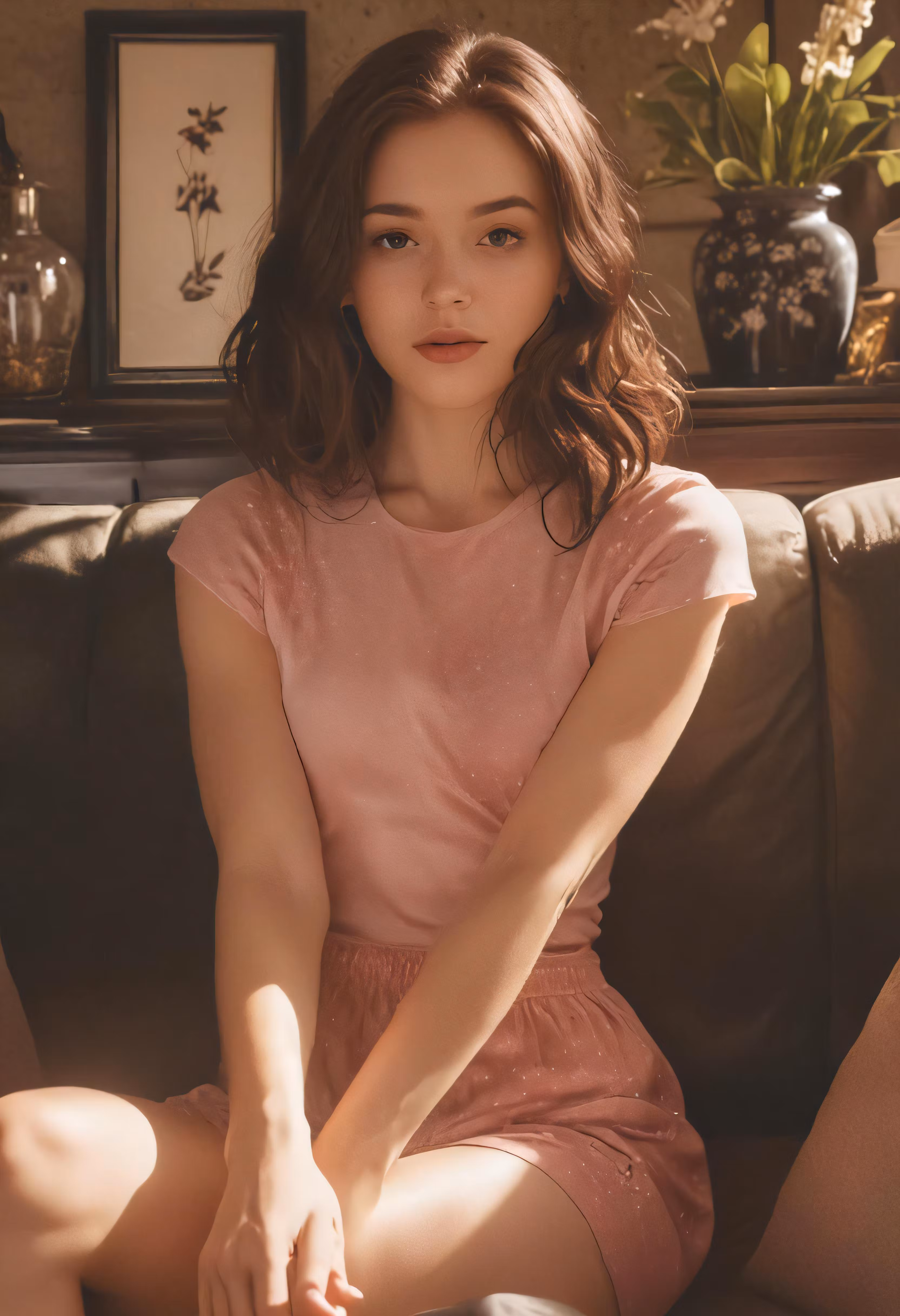 High resolution picture, free to use, the woman is posing for a picture on the couch