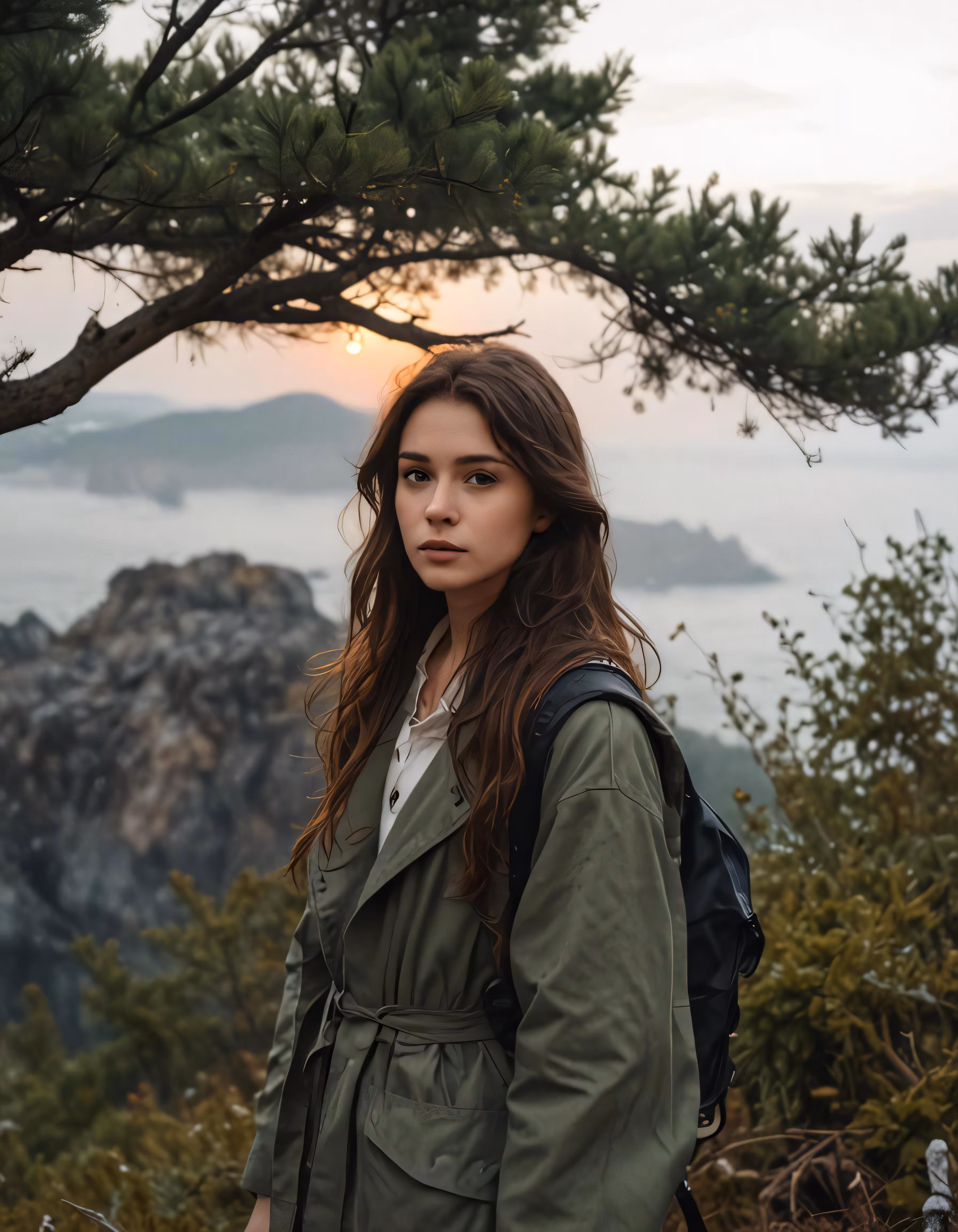 High resolution picture, free to use, the woman is standing at a tree with her back to the camera