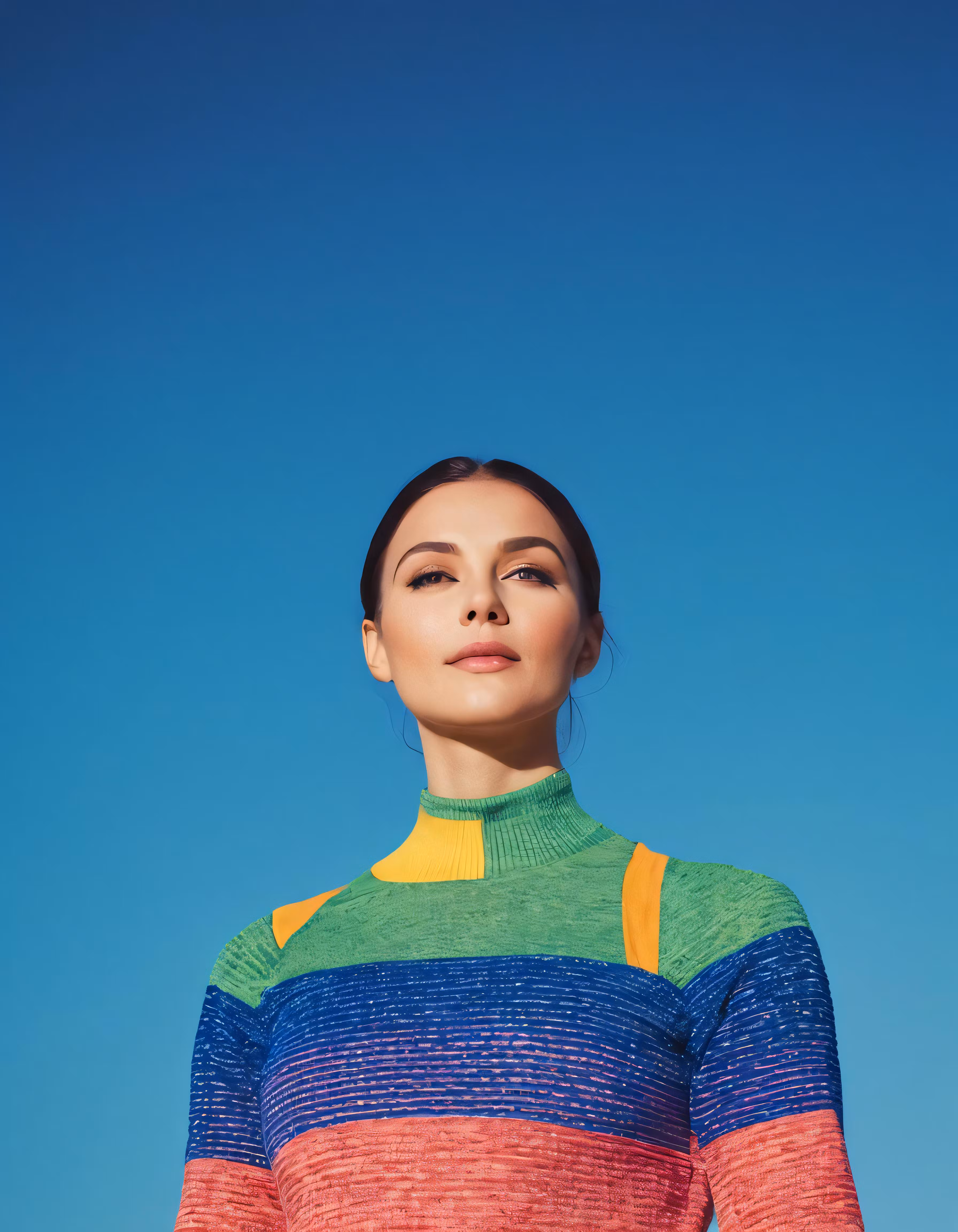 High resolution picture, free to use, the woman is standing in front of a blue sky