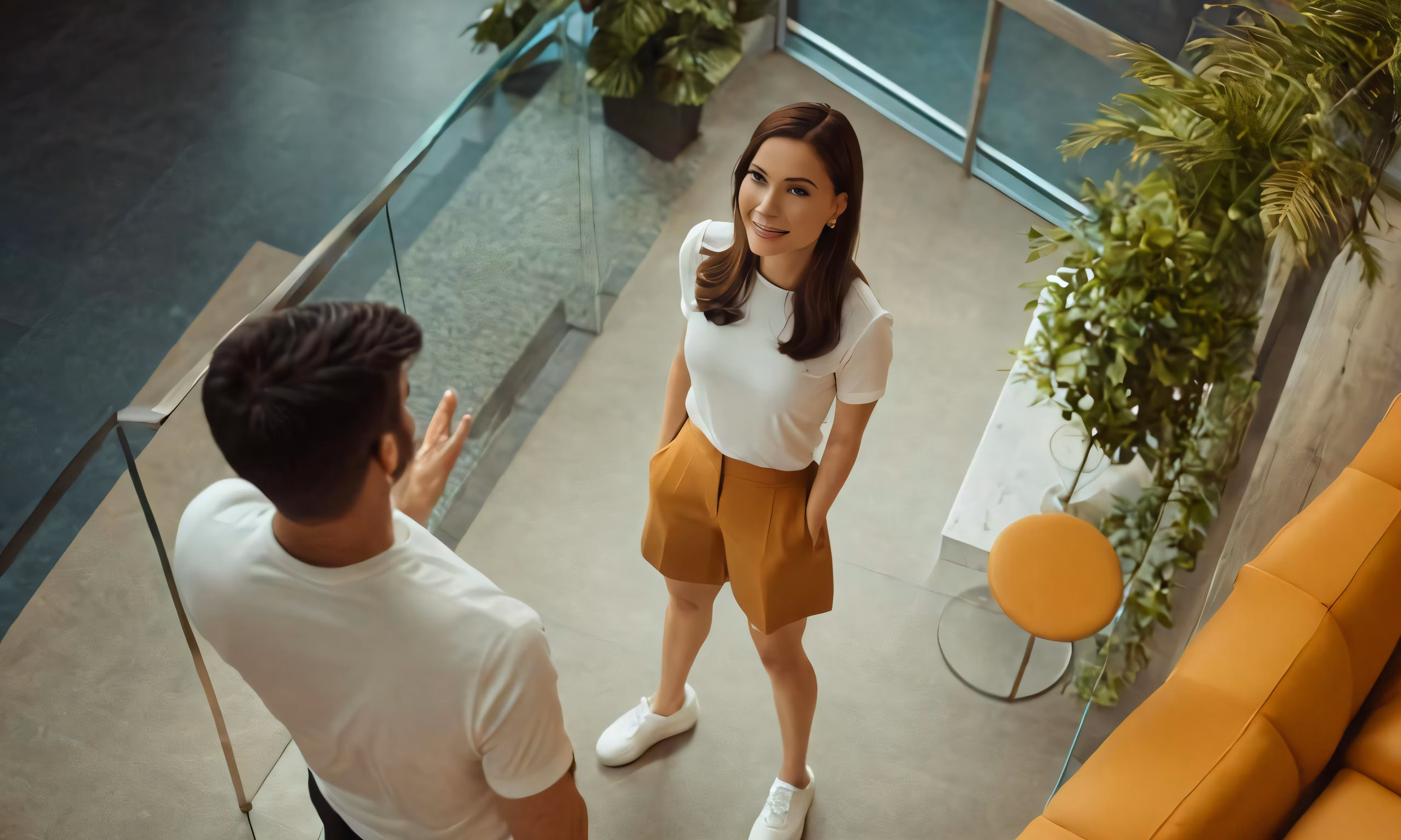 High resolution picture, free to use, the woman is standing near a man in white shirt and brown shorts