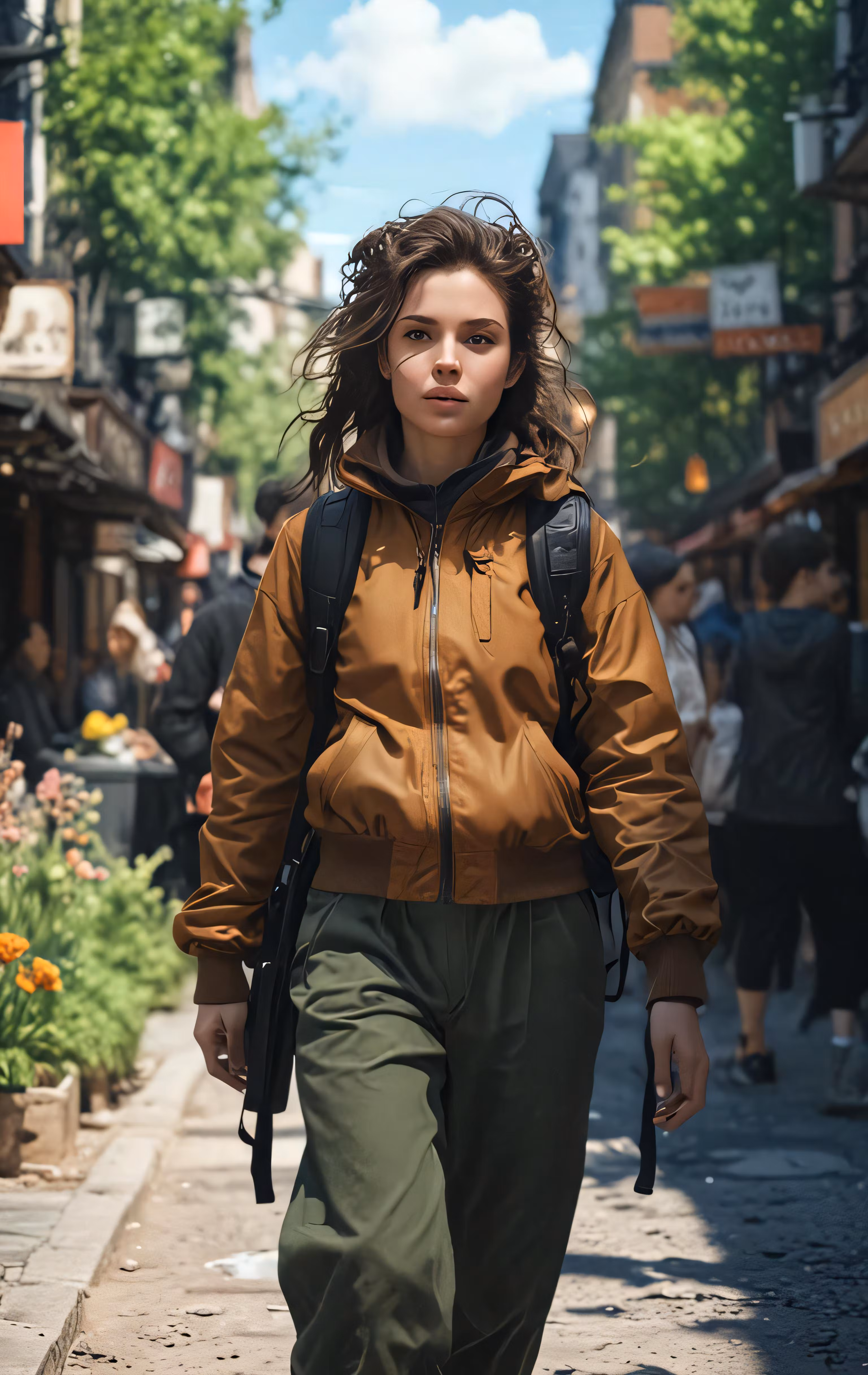 High resolution picture, free to use, the woman is walking down the sidewalk while carrying something