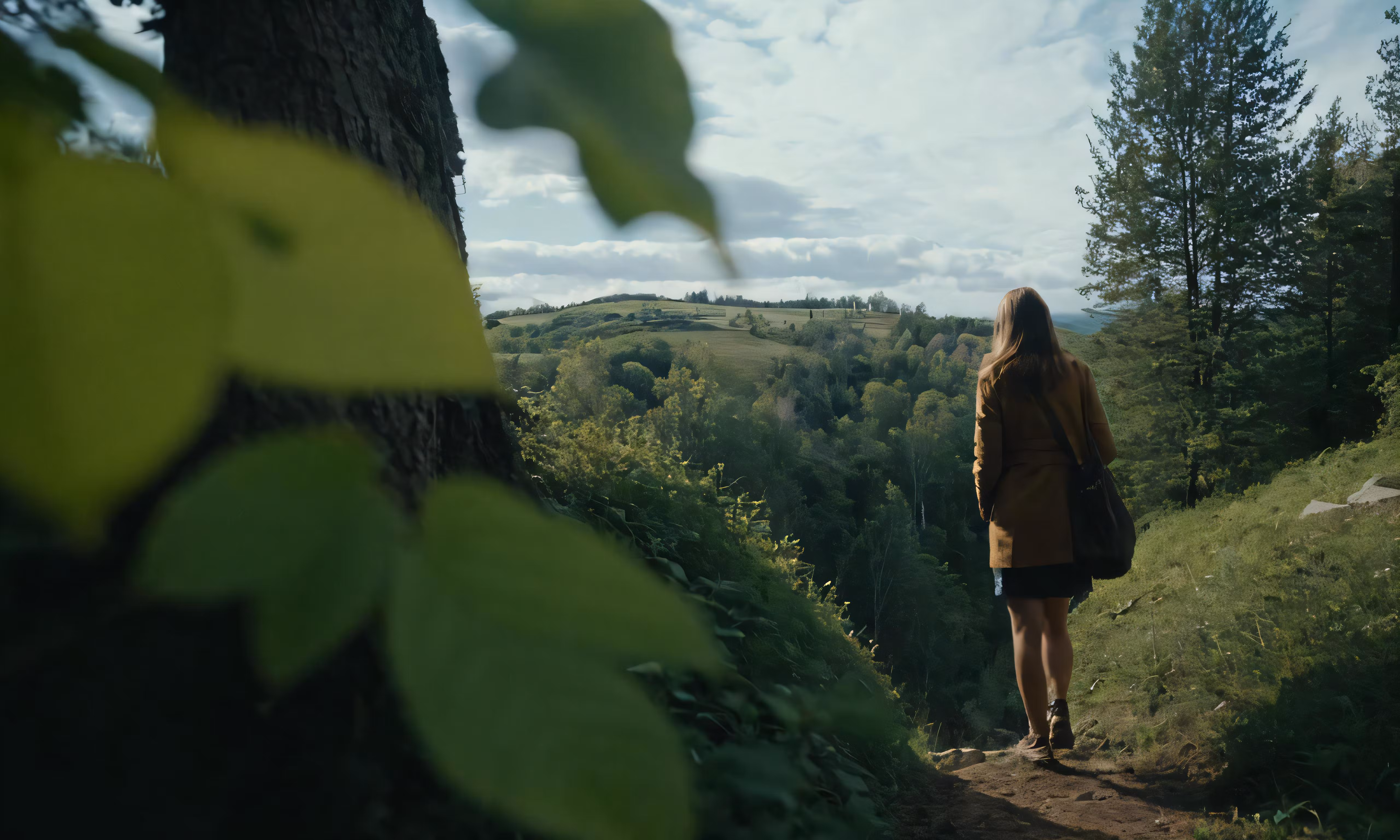 High resolution picture, free to use, the woman is walking on the trail in the forest