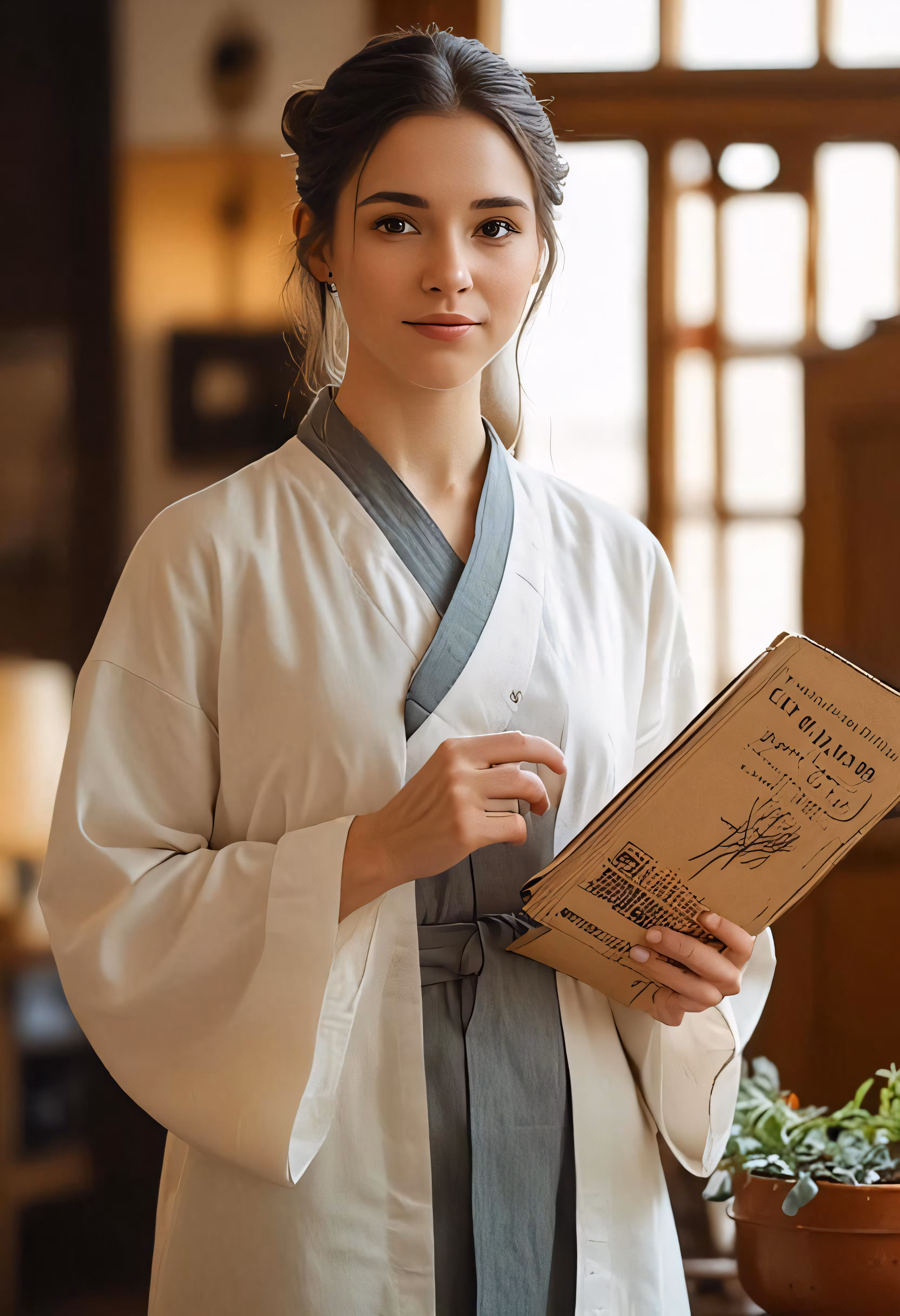High resolution picture, free to use, the woman is wearing a japanese style robe holding an award