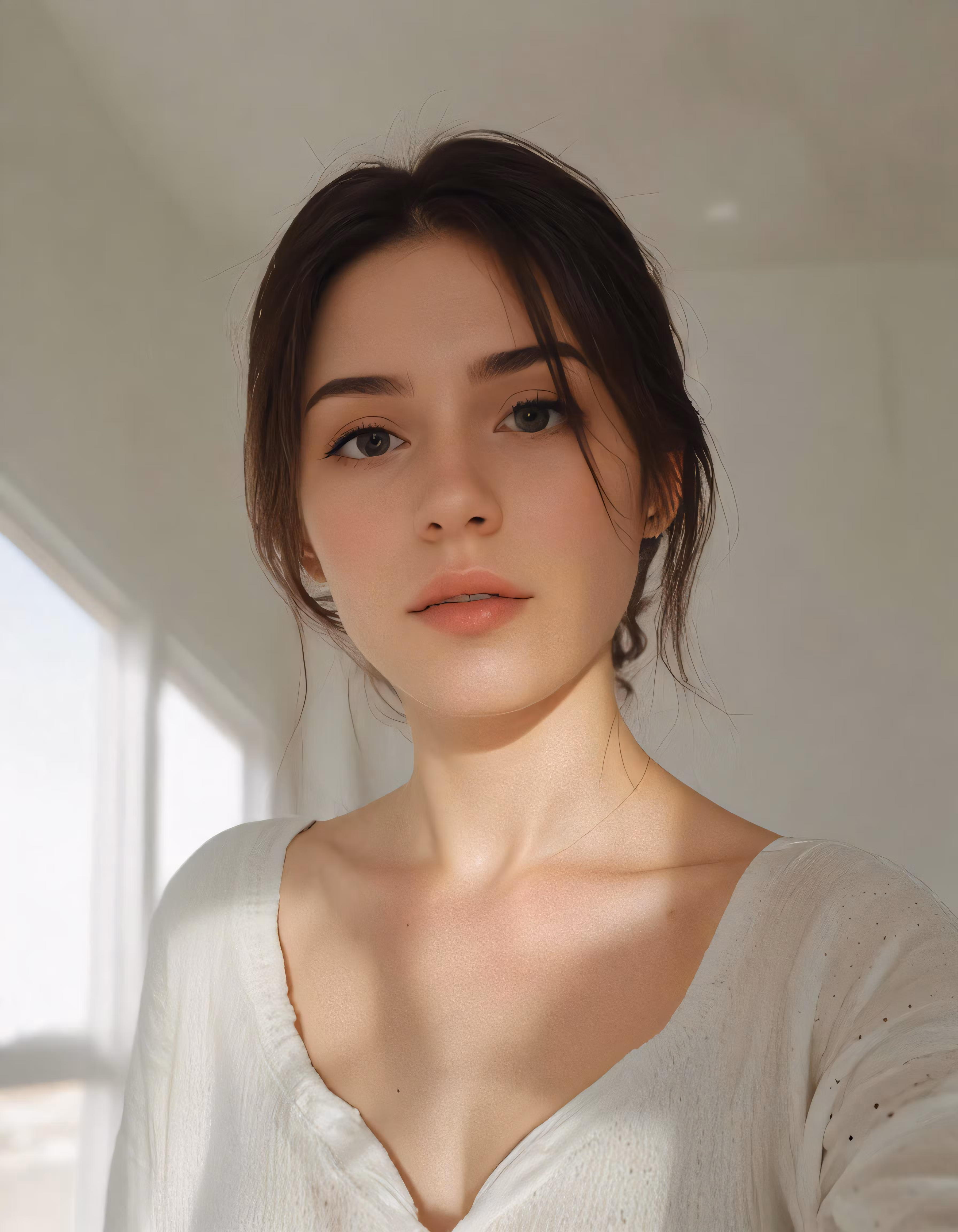 High resolution picture, free to use, the woman is wearing a white top and posing for a picture