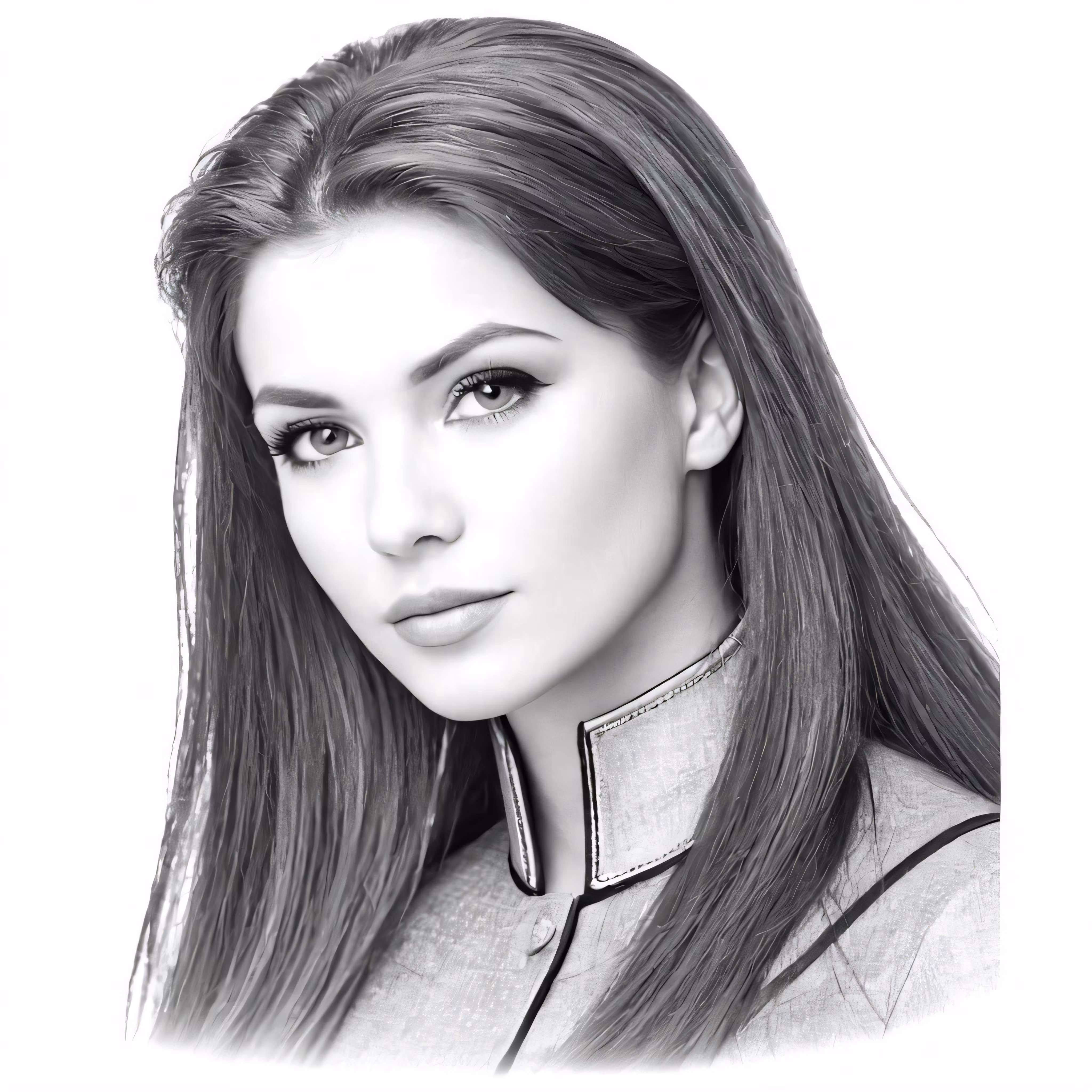 High resolution picture, free to use, the young woman with long hair is wearing long metal necklace