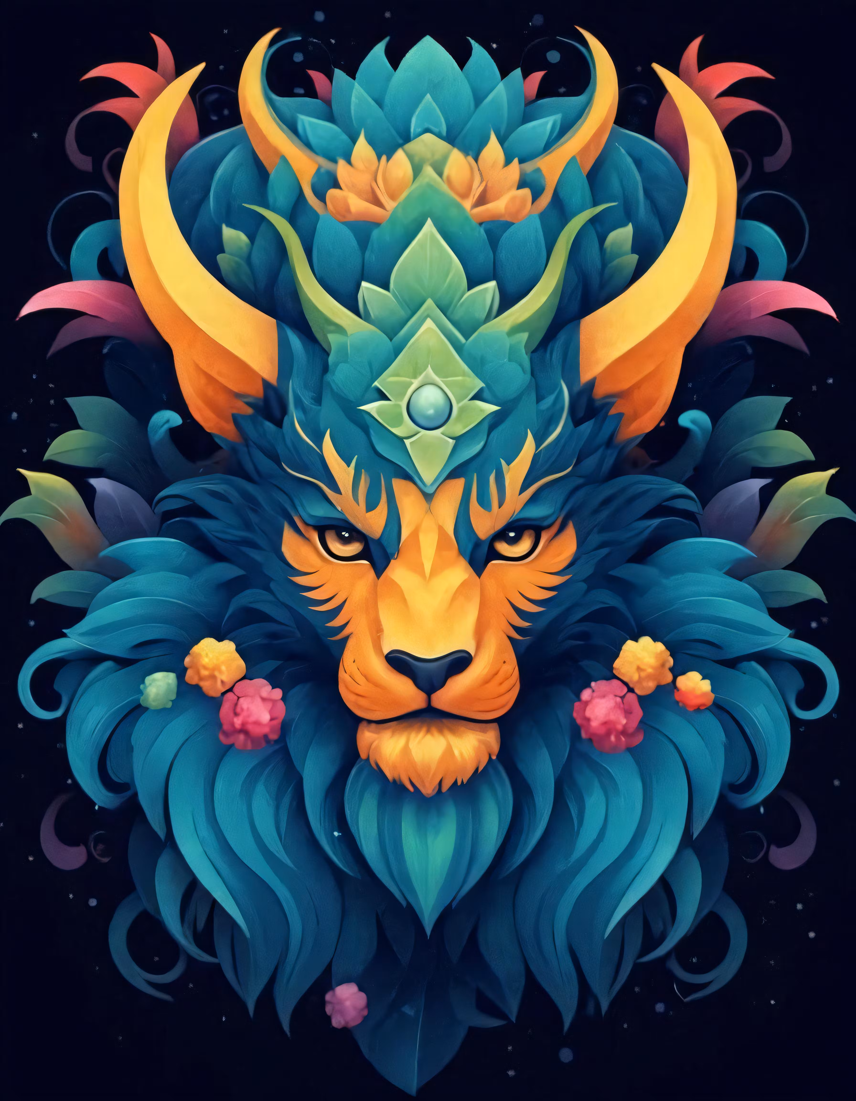 High resolution picture, free to use, the zodiac sign leo is a green animal with horns and long hair