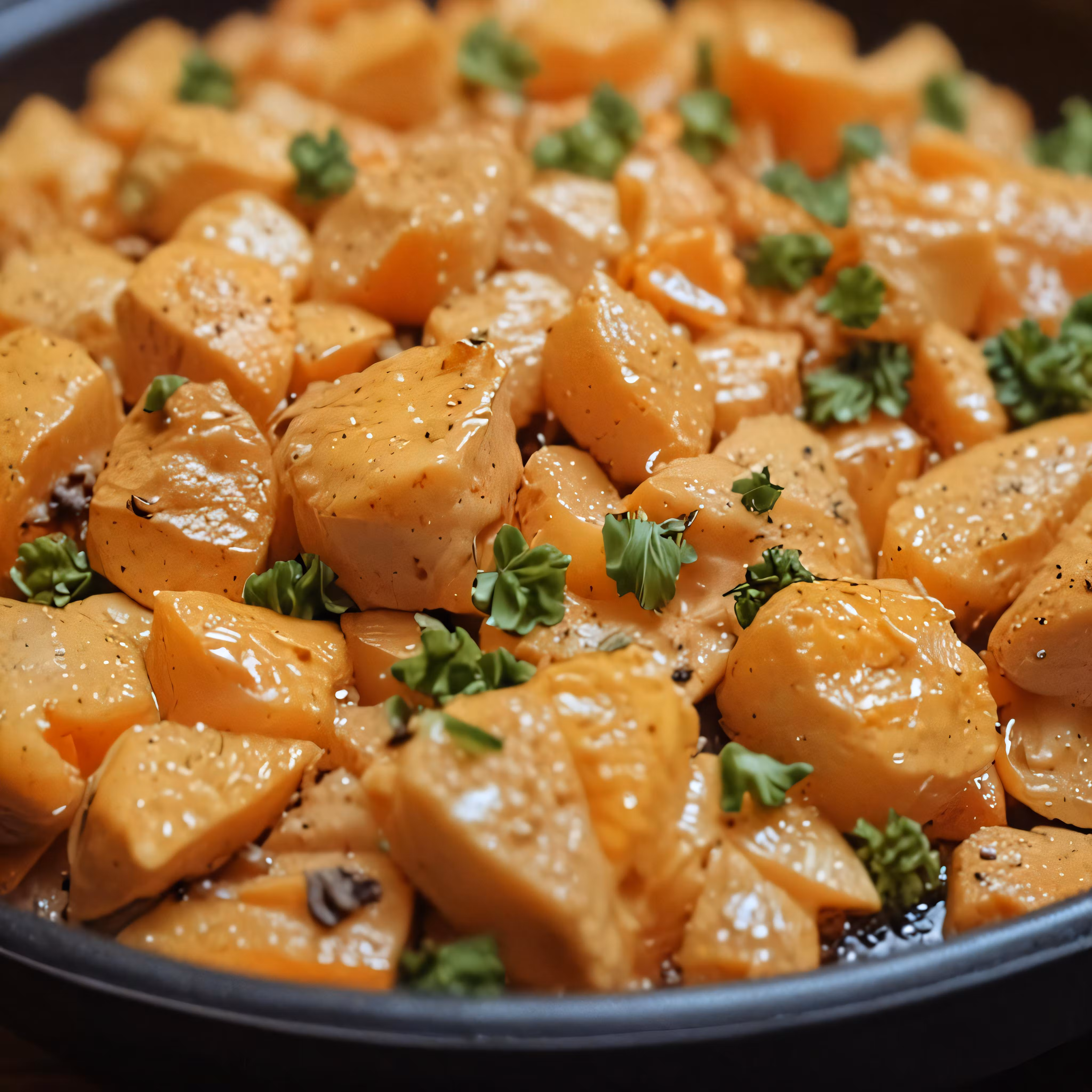 High resolution picture, free to use, there are chunks of brown food in a frying pan