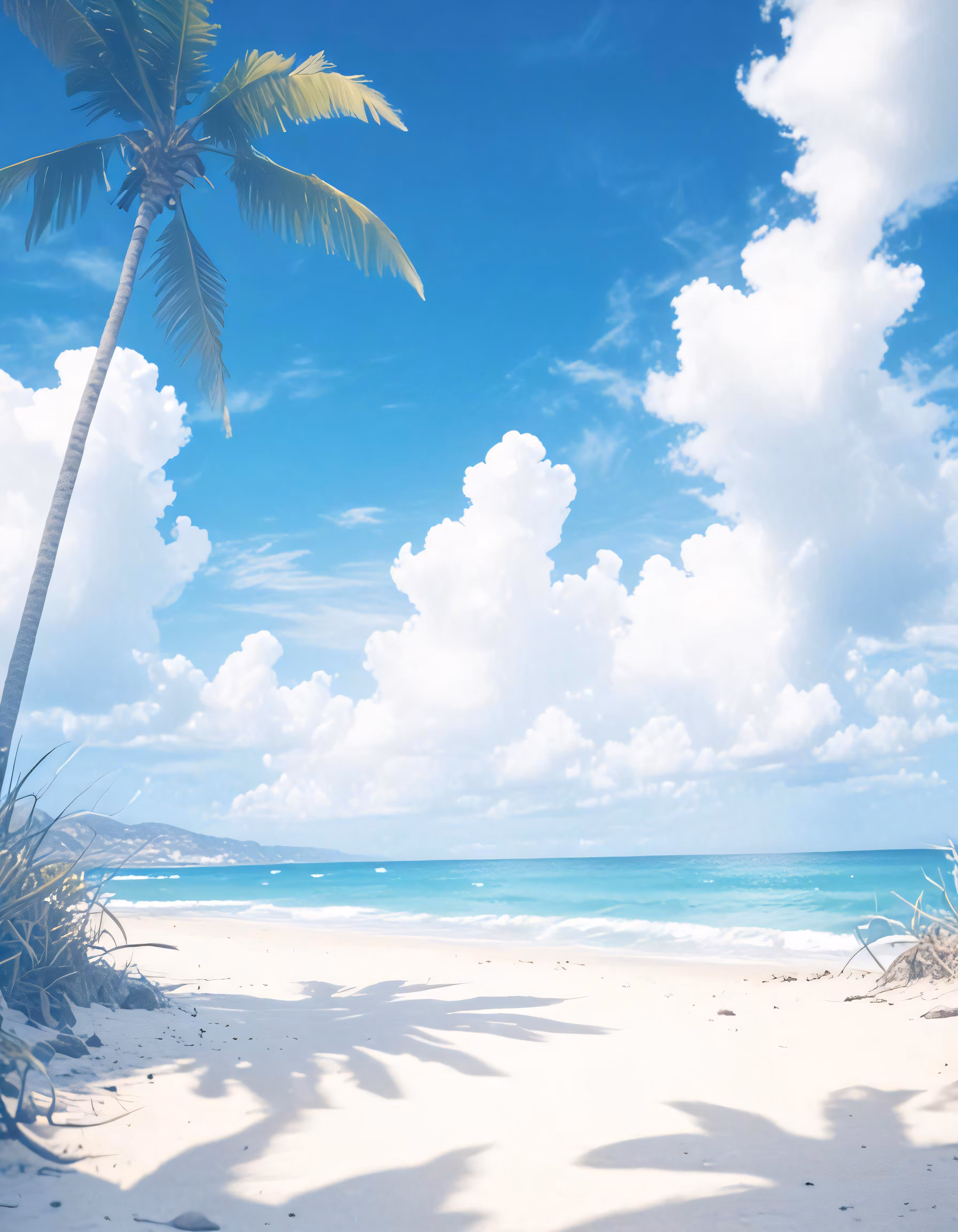 High resolution picture, free to use, there is a beautiful beach that has a palm tree in the background